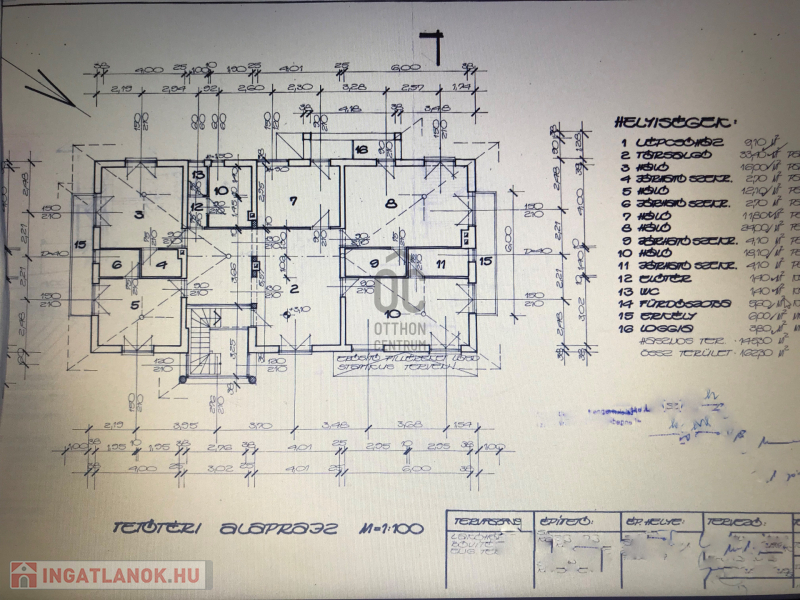 Emelet: nappali-étkező-konyha 33 m2, 7 szoba /mindegyikben fürdőszoba-wc és erkély.