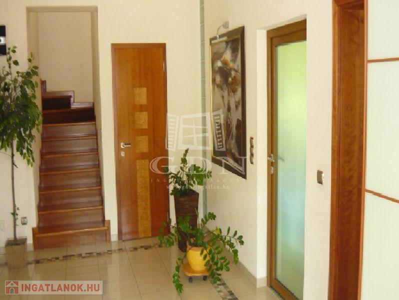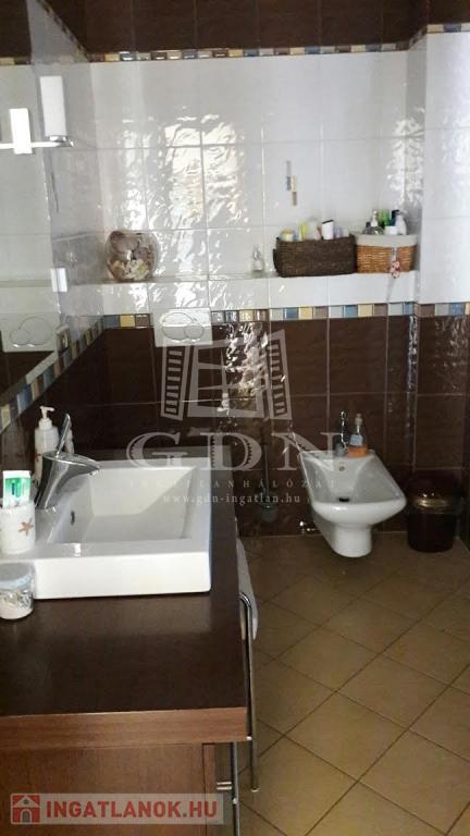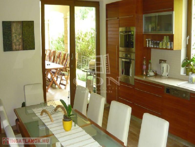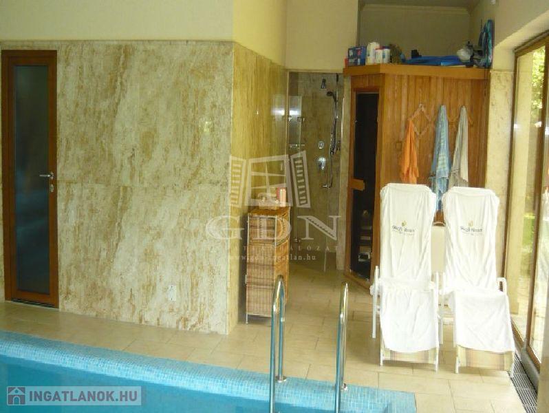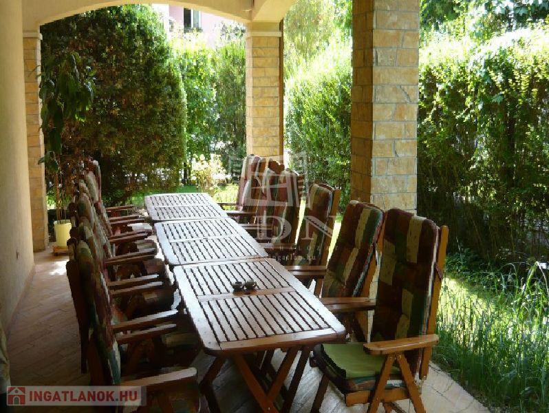 Engedje meg, hogy bemutassam Önnek Siófok egyik legszebb, jó ízlésről is példát mutató ingatlanját. Keresve sem találhat szebbet és kényelmesebbet ennél a siófoki wellnesz szinttel is rendelkező családi háznál. Nem kell rá költeni. Azonnal beköltözhető állapotban várja új gazdáját ez az igényesen megépített és belső burkolatokkal ellátott épület. A kert tele van a ház külleméhez és a klímájához alkalmazkodott növényekkel, bokrokkal és fákkal. Minden évszakban virágzik valamelyik. A kert automata öntözőrendszerrel ellátott,fúrt kútról működik. Az épületbe vízlágyító rendszeren keresztül jut be a folyóvíz. Viessmann kazán biztosítja a kellemes hőmérsékletet. Az alsó szinten minden helyiségben padlófűtéssel, az emeleten a vizes helyiségekben padlófűtéssel, a szobákban pedig hőfokszabályzós radiátorokkal. Központi porszívó rendszer,mosógép, szárítógép és szennyes ruha ledobó is található ebben az ingatlanban. A konyhában a modern frontlapokkal felszerelt bútorban beépített hűtőszekrényt, elektromos sütőt,mikrót, kerámia lapos tűzhelyet, páraelszívót, mosogatógépet és kerámia tálcás mosogatót helyeztek. Számoljon! Ha egy ennél olcsóbb ingatlant vásárol és az itteni extrákkal szereli fel nem jön ki ebből az árból! A wellness részen tangentoros vízkeverő rendszer, 3,5 X 7,5 m fűthető beltéri medence, 6 fős finn szauna plusz zuhanykabin is van. A medence fala mozaik csempével, a helyiség falazata csiszolt sütői mészkővel borított. Soha nem megy tönkre. Az alsó szinten plusz egy vendégvécés, bidés fürdőszoba van. Az emeleten két fürdőszoba, tusolóval, masszázskáddal és bidével. Gardrób szoba is van a ruhák részére. A felső fürdőszobákból szennyes ledobón juttathatjuk a mosókonyhába a szennyes ruhákat. A háztető eredeti,Olaszországból hozatott mediterrán cseréppel lett burkolva. A ház külső szigetelése pasztell vanilia drivit vakolatot kapott. A kertben ősfenyők találhatók. A fűthető garázs 2 személyautó tárolására is bőven alkalmas, itt is megtalálhatjuk a vizes blokkokat. A házba egy előszobán át jutunk, ahol spanyol gardróbszekrény található. Innen nyílik a nappali, ahol egy kandallót láthatunk. Itt óriás méretű kerámialapok és díszcsíkok adják a padlózat mintázatát. Valódi bőr kanapék, kellemes textilfüggönyök és modern bútorok adják a jellegét ennek a helyiségnek. Innen jutunk a konyhába, ahol az étkező is helyet kapott. A nyugati fekvésből adódóan itt mindig süt a nap. A kamra, a mosókonyha és a terasz is innen érhető el. Az épület mögötti teraszra innen is és a medencés helyiségből is kijuthatunk. A nyílászárók korszerű, műanyag, REHAU arany tölgy profilból készültek, helyenként tolóajtós megoldással. A ház színei és berendezése egy kifinomult, modern ízlésvilágról árulkodik. Az emeletre szépen csiszolt, fa lépcsőn jutunk fel. Itt két fürdőszobát is kialakítottak. Három szoba található ezen a szinten, plusz egy gardróbszoba. Laminált parketta borítja a szobák járófelületét. Az ingatlan bútorokkal együtt, beköltözhető állapotban eladó! Ez nem vicc, ha tényleg utánaszámol a mai árak mellett nem tudná ezt az ingatlant ilyen áron, ilyen felszereltséggel felépíteni. Vitorlással rendelkező ügyfeleknek nagyon ajánljuk a kikötő és a Balaton közelsége miatt. Meleg otthon várja Önt ebben a csodálatos épületben!