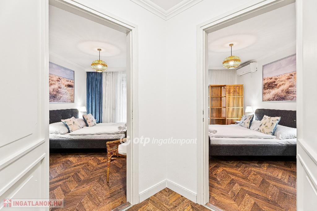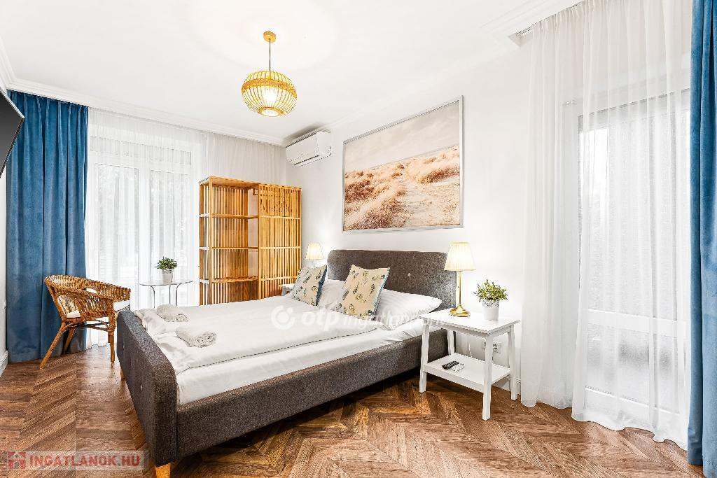 Balaton déli parton, Siófokon 592 m2 lakóház eladó. A 10 kiadható egységgel és 1 lakással rendelkező ingatlan a Foki-hegy kertvárosi részén helyezkedik el. Az igényesen megépített, egyedi belsőépítészeti megoldásokkal, 2001-ben épült ház 3 éve teljes felújításon esett át, jó állapotban van. Az épület földszint plusz emelet kialakítású, földszinten teraszokkal, emeleten erkélyekkel rendelkezik. A fűtést és melegvíz ellátást 3 kombi, kondenzációs kazán biztosítja. A szobaegységekben hűtő-fűtő klímaberendezések is rendelkezésre állnak. Az épület két utcáról megközelíthető, így akár két különálló lakóépületként is hasznosítható lehet. Az épületben szauna, kiszolgáló terek, háztartási helyiség, mosókonyha és 3 egységes garázs is helyet kapott. Az ingatlan 32 fő elhelyezésére ad lehetőséget, kereskedelmi szálláshely, apartmanház is lehet. A parkosított telek terület 1163 m2, közlekedő terek térkővel burkoltak. Az ingatlan teljes berendezéssel együtt eladó, melyet a vételár tartalmaz. Balaton-part, szabadstrand gyalog 800 méterre, városközpont 1800 méterre elérhető. A közelben buszmegálló, iskola, gyógyszertár, vásárlási lehetőség van.