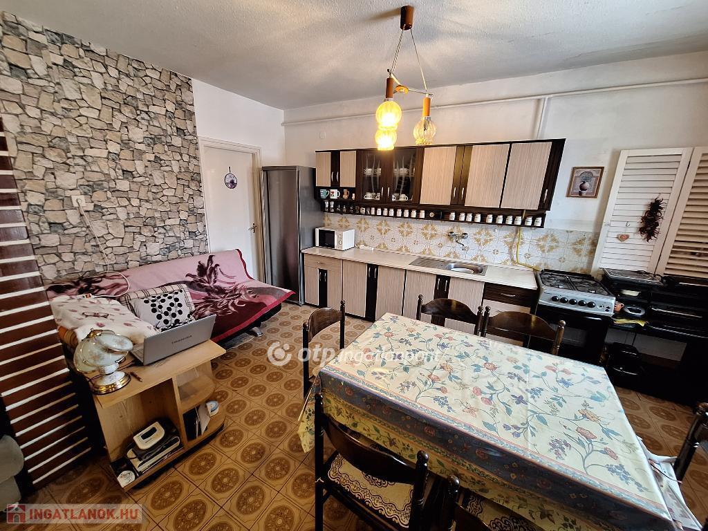 Eladásra kínálok a Balaton déli partján, Siófokon egy 85 m2-es, egyszintes, két lakrészes családi házat. Az ingatlan Siófok Kiliti városrészében helyezkedik el, kertvárosias, csendes lakóövezetben. A komfortos ház melegvizét gázbojler, fűtését helyiségenként gázkonvektor és egy egyedi fatüzelésű kályha biztosítja. A tetőtér beépíthető, 2 padlásfeljáró is ki lett alakítva. A 2215 m2-es telken gyümölcsfák, szőlő, málna és eper ültetvények találhatók, bőven adódik lehetőség gazdálkodásra, kertészkedésre. A külön bejáratú hátsó, egyszobás lakrész kiváló lehet kiadásra vagy egyedül élő családtag számára állandó otthonnak. A városrészben bevásárlási lehetőség, gyógyszertár, iskola, óvoda is biztosított, Siófok központja 4,6 km távolságra van. Várom megtisztelő hívását!
