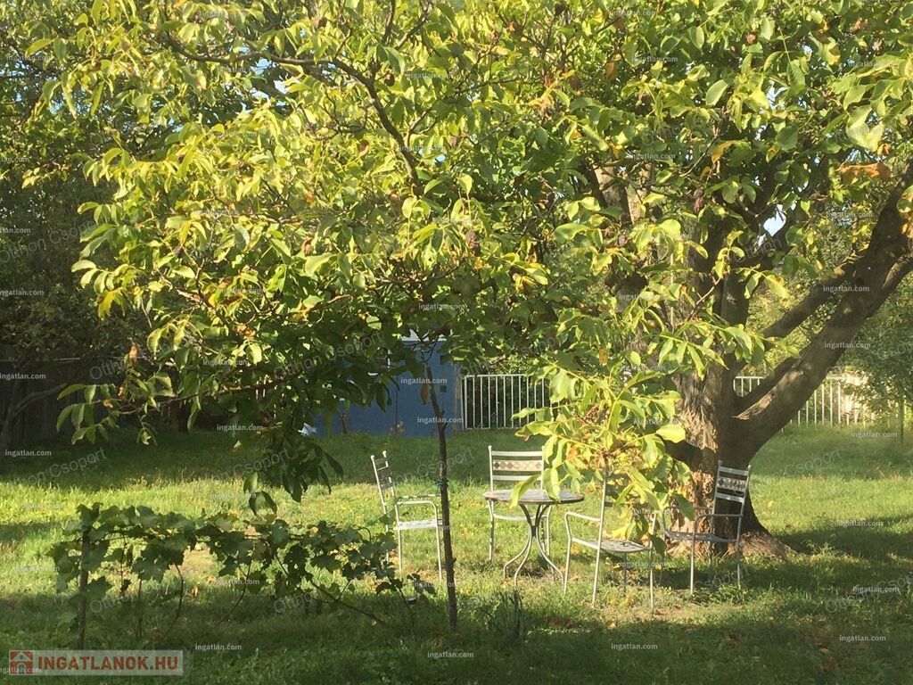 Az örömforrást adó szép és nagy hátsó kert rejtve marad még az utca gyér forgalma előtt is, intim tere csak a családé. Itt az 5 m2-es tároló és egy bográcsozásra kialakított hely mellett, jól termő dió-, meggy-, cseresznye-, sárgabarack- és almafa is van, kiegészítve egy-két tő szederrel, málnával és szőlővel, melyek öntözése a fúrt kútból megoldható.