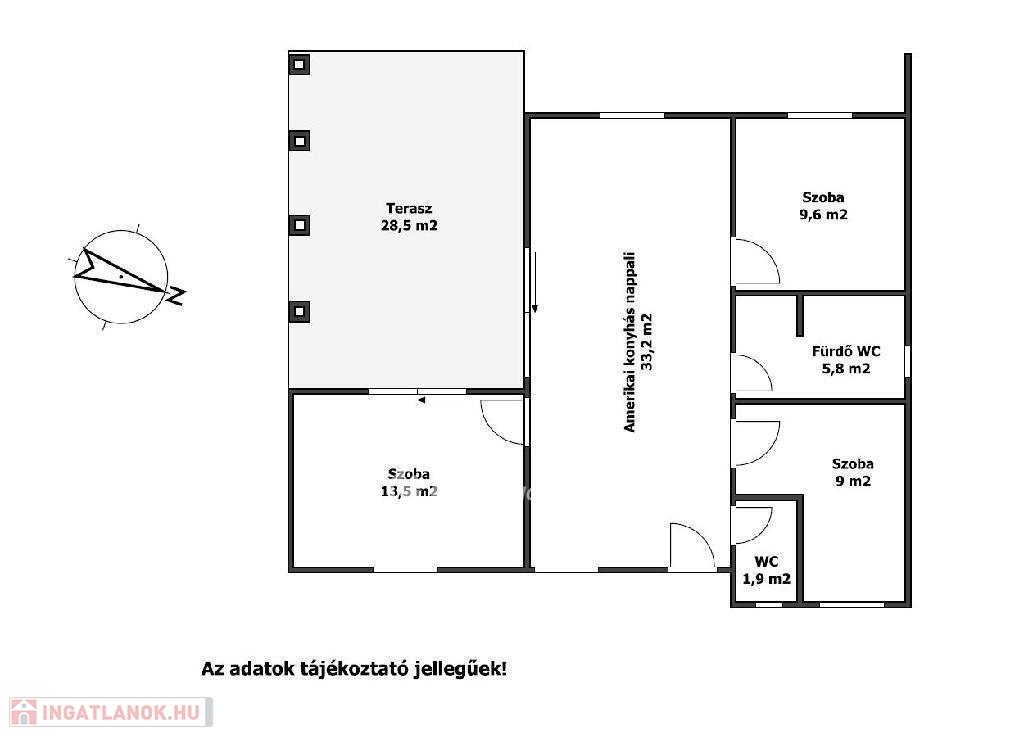 A ház egy tágas, amerikai konyhás nappalival és három külön nyíló hálószobával rendelkezik, amelyet egy nagy méretű, hangulatos terasz egészít ki - ideális helyszín a családi vagy baráti együttlétekhez. Az ablakokra redőnyök kerülnek, a terasz felé elektromos vezérlésű kivitelben. A fűtés hőszivattyúval megoldott.
