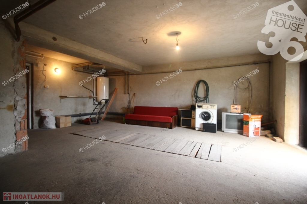 A szuterénben utcáról behajtható szerelőaknás garázs és műhely/nyári konyha/tároló (egy légtérben összesen 50 m2); további kettő, befejezésre váró helyiség (11 és 12 m2), külön hátsó bejárat.