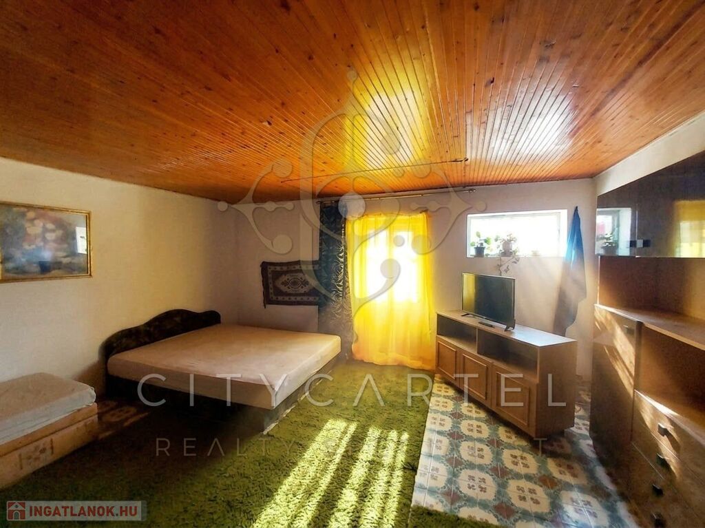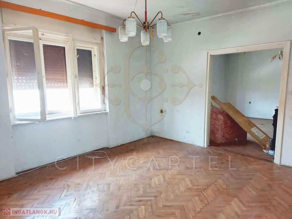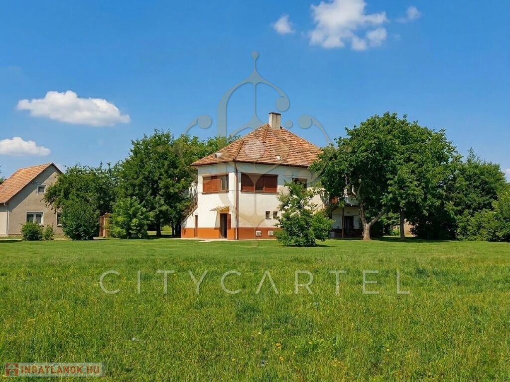 A csendes alföldi kisváros centrumától néhány percnyire, családias hangulatú utcában, felújításra szoruló, kétszintes családi házat kínálunk eladásra. Az 1970-es években épült, kiváló statikai állapotú épület masszív, csúsztatott zsalus technológiával készült falai 150 nm-es hasznos alapterületű lakóteret zárnak közre. A ház fölszintjén található, két autó számára is alkalmas garázsból egy 50 nm-es, 1+1 szobás, összkomfortos lakás nyílik. Az emeleten elhelyezkedő 3 tágas, napfényes szobához konyha, kamra, előszoba, fürdőszoba és WC kapcsolódik. Az ingatlan fűtéséről hagyományos cserépkályhák gondoskodnak. A családi ház a szigetelést, elektromos- és vízvezetékek felújítását, nyílászárók és burkolatok cseréjét követően kényelmes, meleg otthont biztosíthat nagyobb családok, vagy akár két generáció számára is. A tekintélyes méretű, 2.317 nm-es telek gazdálkodásra is kiváló lehetőséget kínál, de parkosított udvar és kert kialakítására is alkalmas lehet.