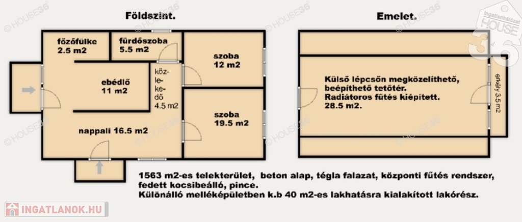 - 1563 m2-es telekterület, különálló felújítandó lakőrész k.b: 40 m2.