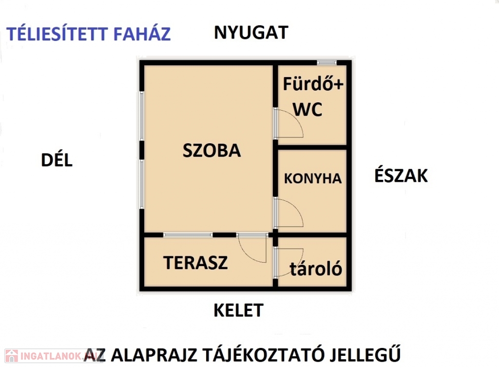 A ház és az utca között egy 32 m2-es, téliesített, fűthető, lakható faház található
