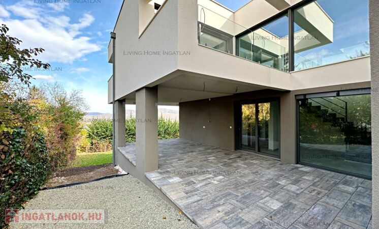 A newly built, premium quality detached family home is for sale on one of Solymár's most beautiful hillsides with panoramic views. The light flooding in through the huge glass surfaces and the stunning views show a different face in every season – morning coffee on the terrace, sunset in the living room in the evening. The eternal panorama of the Buda Hills and the clean, modern architecture create perfect harmony here.The 245 m² home with 5 rooms is unique for its floor-to-ceiling glass surfaces and panoramic terraces. The Vaillant heat pump system, ceiling cooling and heating, heat recovery ventilation, and premium windows and doors with shutters ensure the highest level of comfort. Every detail here is about quality.