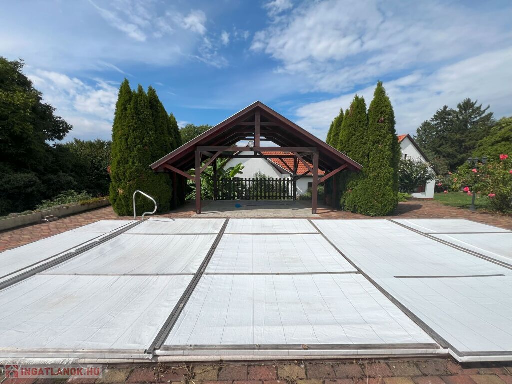 Telek: A tágas, 7178 m2- es udvar igazán különleges: központi eleme a medence, amely mellett egy féltetős napozó és pihenőrész kapott helyet. A kertben dupla garázs, szerszámtároló, fatároló, valamint gondozott zöldterületek, bokrok, cserjék és virágok teremtik meg a vidéki idillt. A telek teljesen zárt és bekerített, hátsó része jelenleg bérbe van adva, de bármikor visszakérhető, így rugalmasan alakítható a használata.