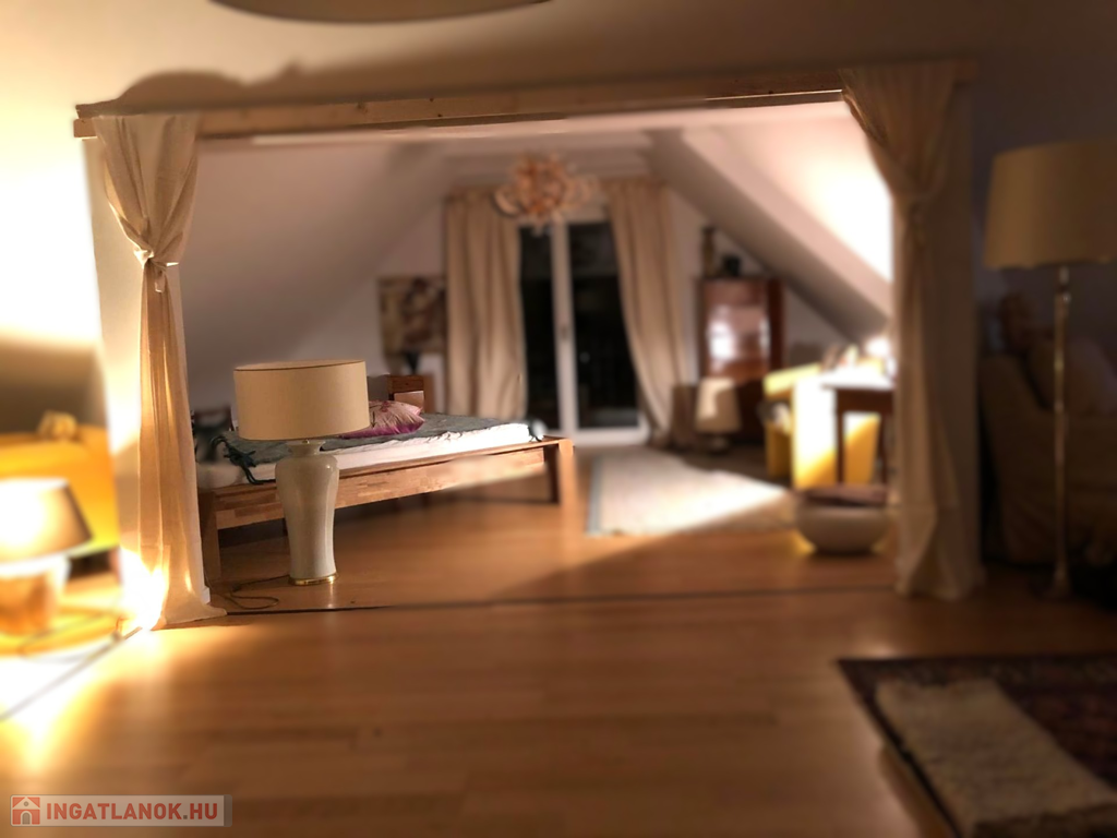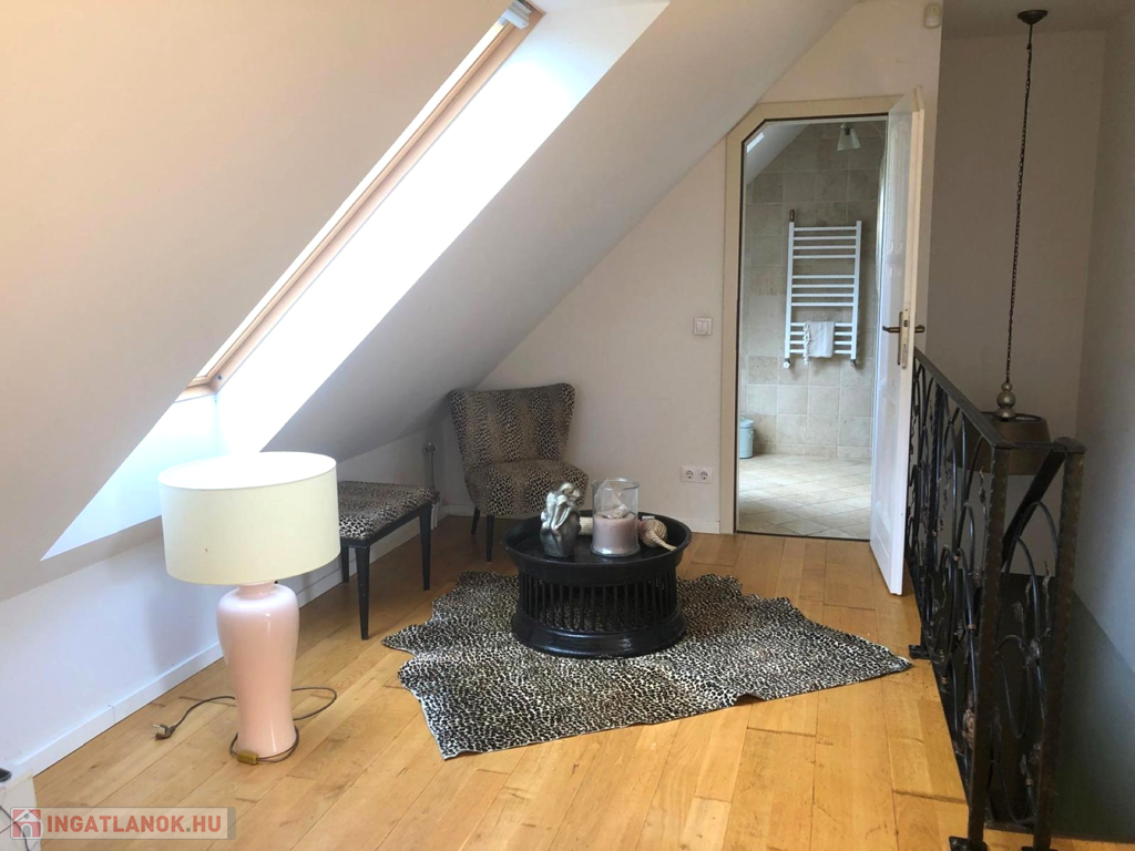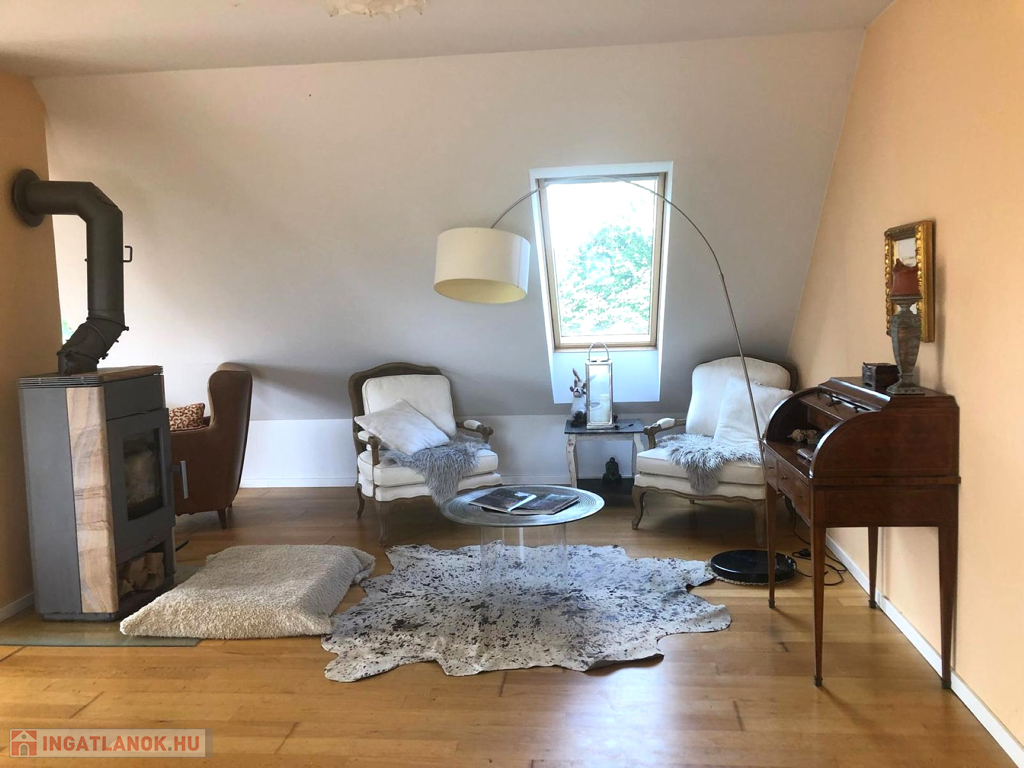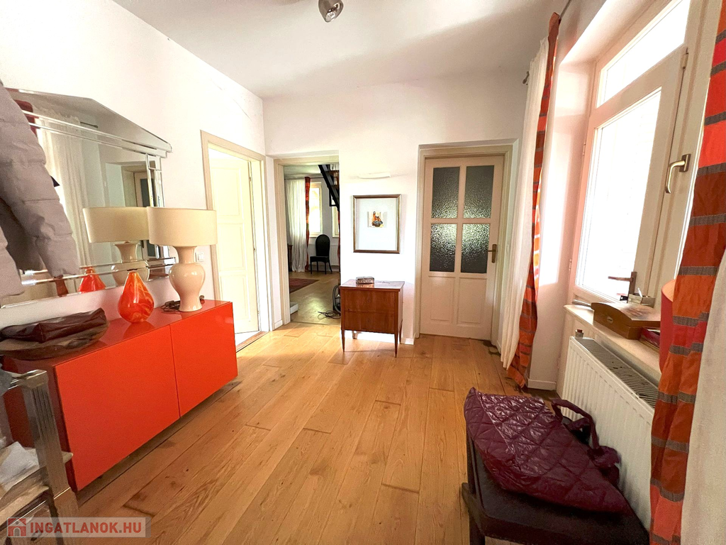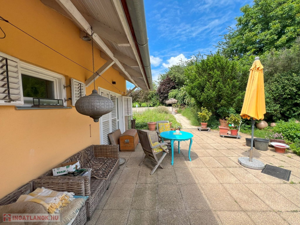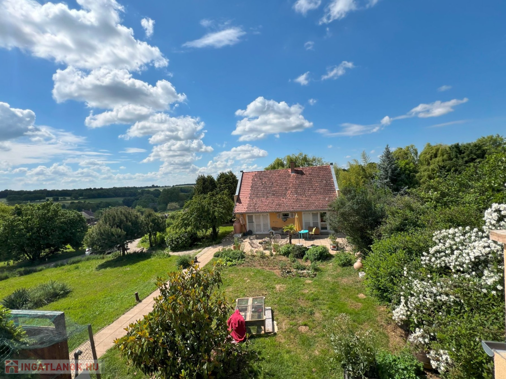 Az ingatlan jellemzői: Az impozáns, 250 négyzetméteres főépületéhez három hangulatos terasz tartozik: két fedett az alsó szinten, valamint az emeleten egy különleges panorámaterasz, lélegzetelállító kilátással a környező dombvidékre. A mediterrán stílusjegyeket viselő, boltíves, mintegy 45 m²-es alsó terasz teljesen fedett, és akár télikertté is átalakítható. Két bejáraton keresztül közvetlenül kapcsolódik az egy légterű konyhához, étkezőhöz és nappalihoz, így ideális közösségi tér jön létre. A konyha mellett kamra található, amelyet egy praktikus háztartási helyiség követ. A földszinten három szoba található, ezek közül az egyikben beépített szekrények segítik a praktikus tárolást, valamint egy padlófűtéssel ellátott fürdőszoba is biztosítja a kényelmet. A földszintről egy tömör tölgyfa lépcső vezet fel az emeletre. A tetőtér 2018-ban teljes körű felújításon esett át, modern loft stílusban: itt kapott helyet egy külön gardróbszoba beépített szekrényekkel, egy újabb padlófűtéses fürdőszoba, valamint egy nyitott galériatér. Mindkét szintet egész nap elárasztja a természetes fény.