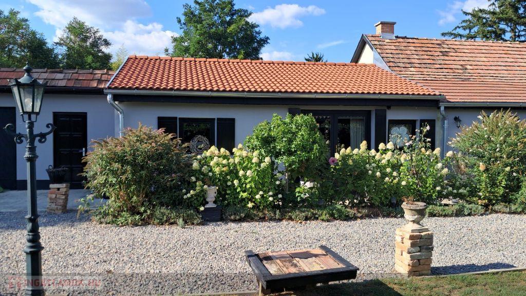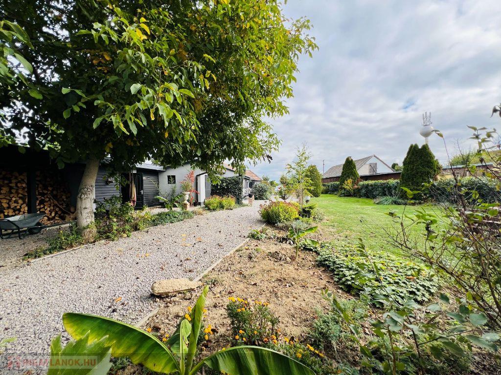 Telek: Az udvar tágas és gondozott, virágokkal, cserjékkel és bokrokkal díszített, teljes egészében körbekerített terület, amelyet rendezett szegéllyel határolt járda tesz még ápoltabbá. A hatalmas kert számtalan lehetőséget kínál a szabadidő eltöltésére: ideális hely a pihenéshez, grillezéshez, kertészkedéshez vagy akár kisebb gazdálkodáshoz is. A telken dupla garázs és fatároló található, a hátsó bejáratnak köszönhetően pedig az ingatlan autóval erről az oldalról is kényelmesen megközelíthető, lehetővé teszi lakókocsi beállását is, így a terület vendégek fogadására vagy hosszabb tartózkodásra is kiválóan alkalmas. A kert hátsó részén gondosan ápolt gyümölcsfák sorakoznak, tovább fokozva a természetközeli, vidéki atmoszférát.
