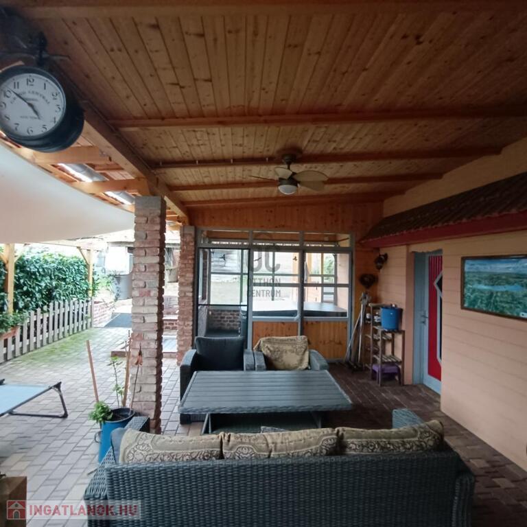 - az étkezőből érkezünk a hatalmas fedett teraszra, amely biztosítja az ellazulást és a közös családi, baráti összejövetelek kellemes időtöltését