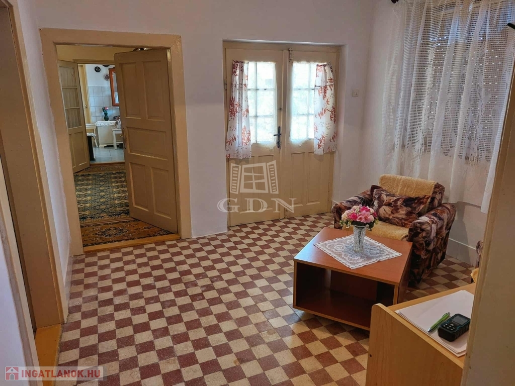 A faluban, nyugodt utcában található ez a háromszobás, 80 m2-es, közepes állapotú, teljesen lakható, de igény szerint felújítandó ház. Az utcában sok német illetve angol családnak van gyönyörűen felújított háza. Az ingatlanhoz több gazdasági épület és istálló is tartozik, a nagy telek (6962 m2) pedig számtalan lehetőséget kínál: alkalmas lehet gazdálkodásra, de akár ló- vagy más állattartásra is.