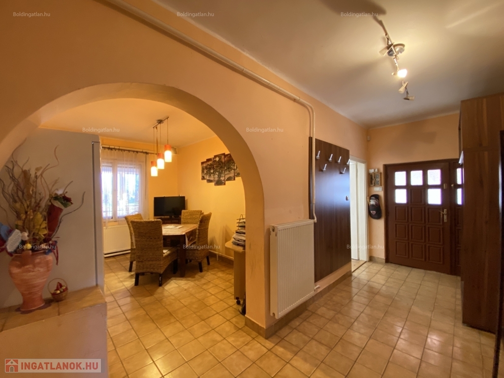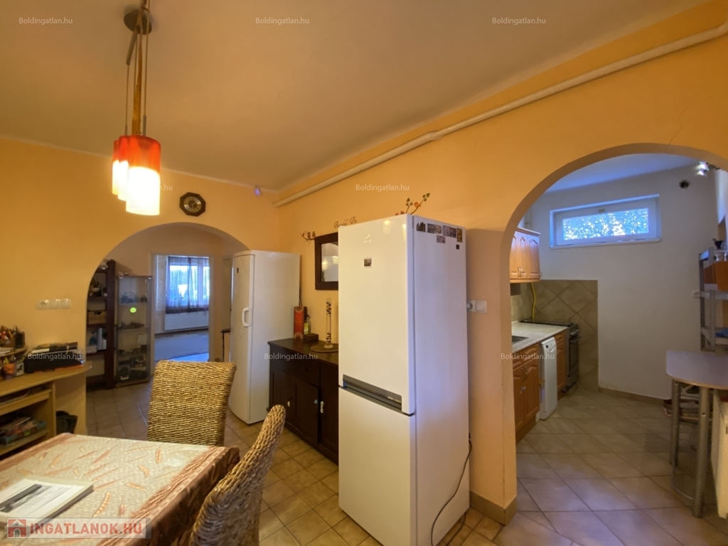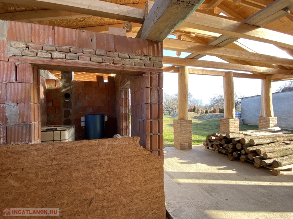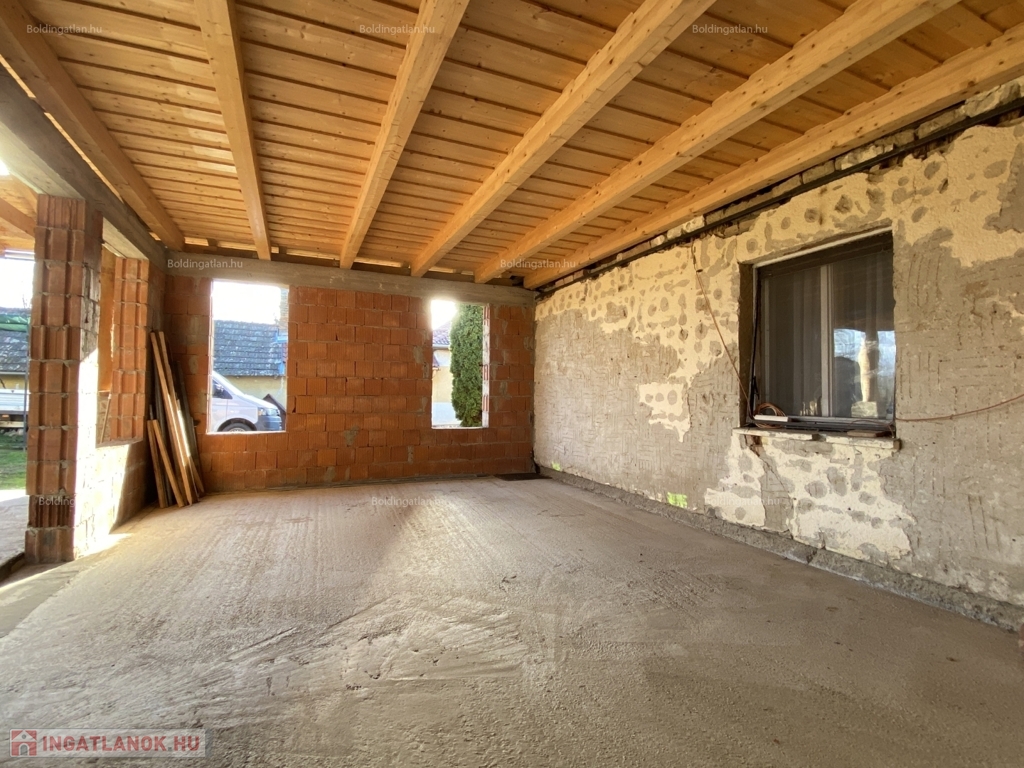 Somogyváron - a Balatontól csupán 20 km távolságra - kellemes környezetben lévő 91 m2-es - akár azonnal birtokba vehető -, vállalkozásra is alkalmas családi ház, a képeken látható készültségi fokban lévő bővítménnyel eladó. A lakóházban előtér, 3 szoba, étkező, konyha, fürdőszoba, wc helyiségek kerültek kialakításra, a fűtése és melegvíz ellátása Viessmann kombi gázkazánnal megoldott. A tulajdonos a 68,72 m2-es hozzáépített épületrészének, illetve a 41,5 m2-es, keleti fekvésű fedett terasz bővítésének munkálatait már elkezdte, amely bővítmények jelenlegi műszaki állapota, és készültségi foka a képeken látható. A kialakításra kerülő, beépítendő térnek a rusztikus stílusú, egyedi atmoszféráját a nyitott - több mint 4 m széles - fa gerendás födém, továbbá a belső, zárt udvar felé néző ablakai biztosítják. Az udvarban 1 személyautó részére garázs és pince van, továbbá mezőgazdasági gépek tárolására, vagy egyéb célra, vállalkozásra is alkalmas 84 m2-es könnyűszerkezetes épület áll. Telek: 2.104 m2