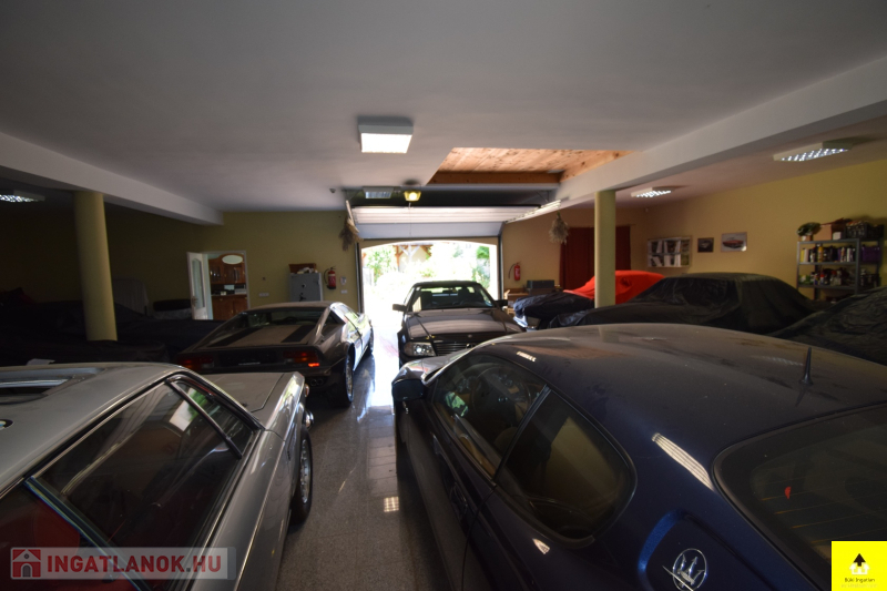 • 168 m²-es gépkocsitároló található, mely rész igényesen kialakított, hőszivattyús rendszerrel működő padlófűtéssel és gránit burkolattal rendelkezik. A nagyszámú ablaknak köszönhetően világos és tágas, így könnyedén több helyiségre, akár lakószobákra is tagolható.