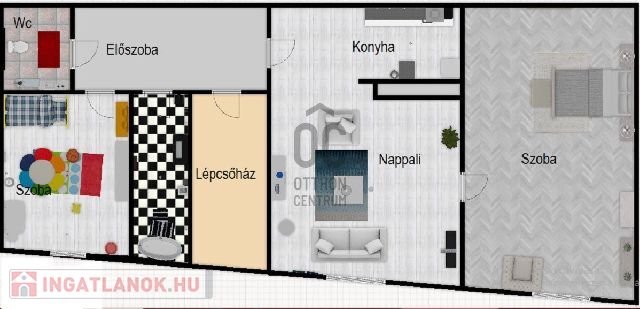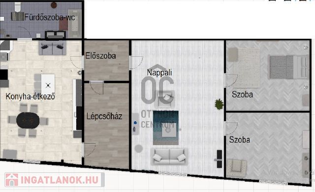 - A földszinti lakás: nappali-konyha+ 2 db háló