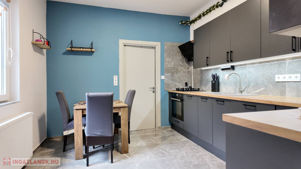 Az ingatlan a tavalyi évben egy teljeskörű felújításon ment keresztül, mely kiterjedt a ház minden részére: