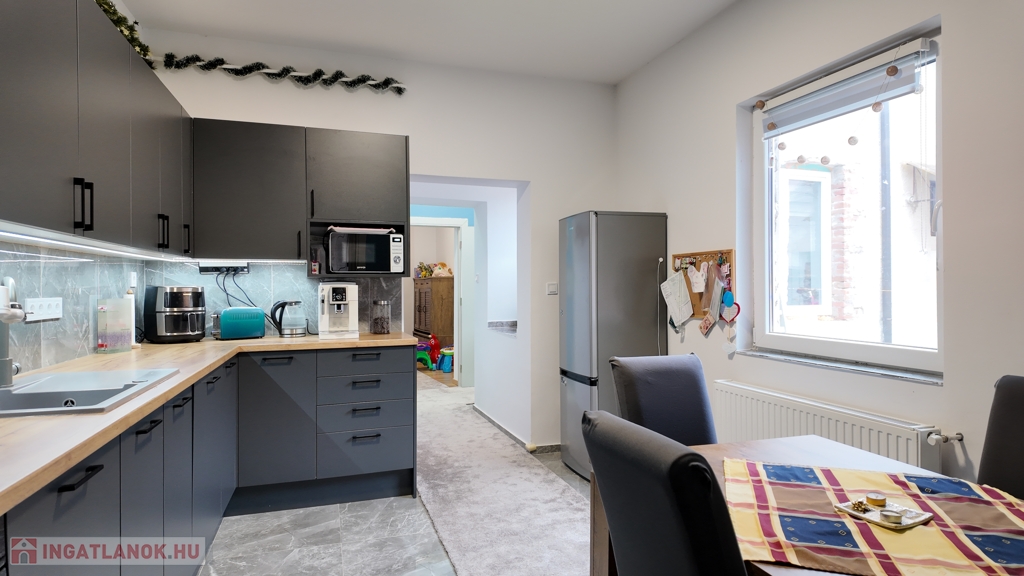 A teljes konyha-étkező és a kádas, tusolós fürdőszoba külön wc-vel szintén a tavalyi évben került beépítésre!