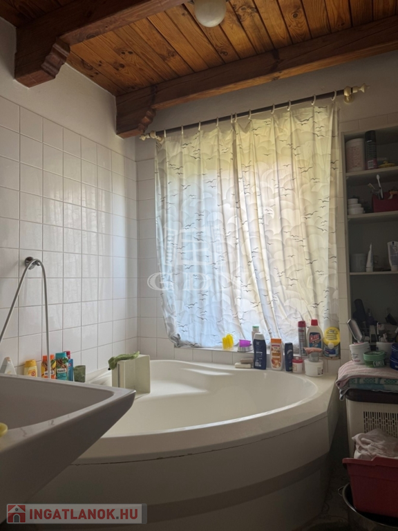 A ház melegét gázkazán biztosítja radiátoros hőleadással, illetve a kellemes komfortérzetről egy egyedi kandalló is gondoskodik.