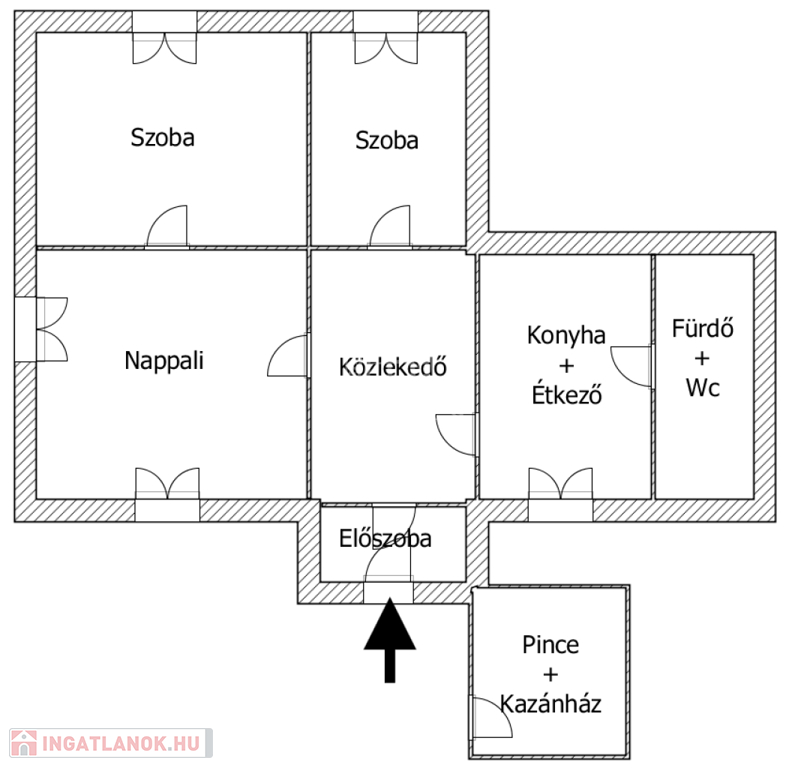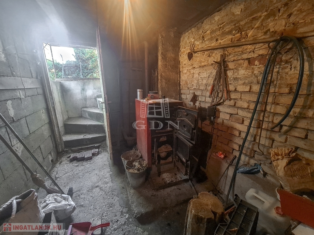 Az épület az 1920-as években épült, beton alapra, kalapácsos téglából (45 cm), fa födémmel, kerámiacserép fedéssel. Az ingatlan 1999- ben nagyobb felújításon esett át, azóta a nyílászárók lettek részben kicserélve (műanyag thermo üvegezésel). A házba közművekből egyedül a villany van bevezetve, a víz fúrt kútból szivattyúval jut be az ingatlanba, szennyvíz saját emésztőbe folyik, a fűtés pedig vegyestüzelésű kazánnal megoldott, ami a pincében található.