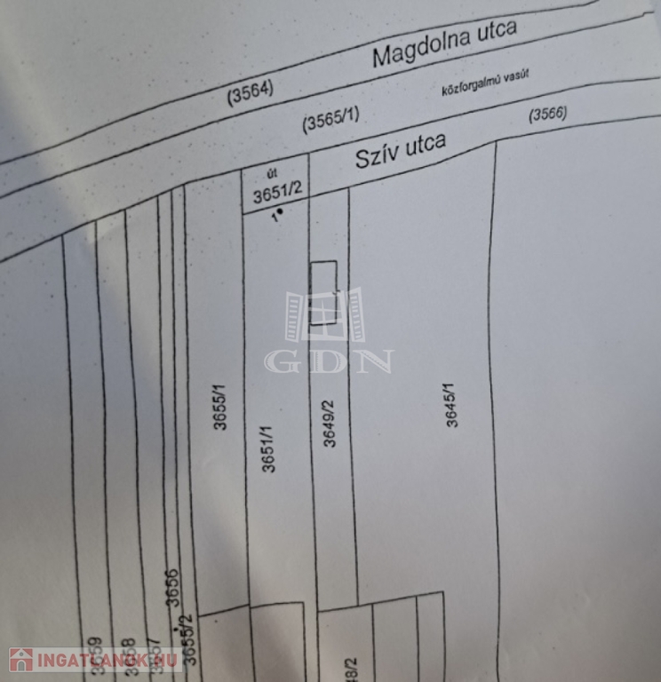 A telken két családi ház épül, az első ingatlan 18 méter széles és 48 méter hosszú 700 m2-es területtel az utcafronttól 5 méterre épül, a hátsó ingatlan 3 méter széles 48 méter hosszú 144m2-es szolgalmi úton lesz megközelíthető,a hátsó telek területe 2798 m2.