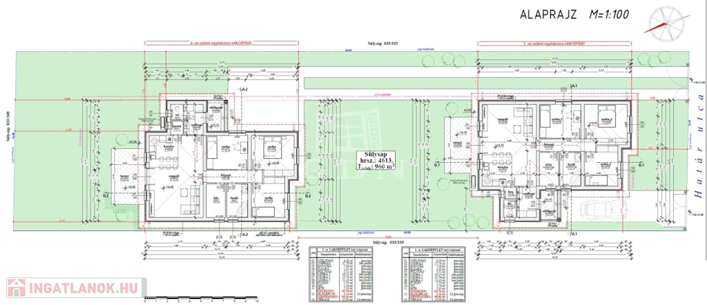 Az első ingatlan 438 m2-es kizárólagos használatú telekrésszel kerül kialakításra. Vételára: 69.900.000.- Ft.