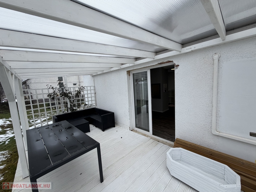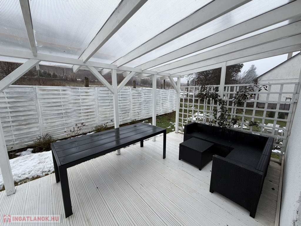 - Nappali + terasz kapcsolat: új építésű, fedett terasz, közvetlen kijárattal – reggeli kávé, esti bor, este beszélgetés, eső nem számít és ahol az idő végre lassabban telik