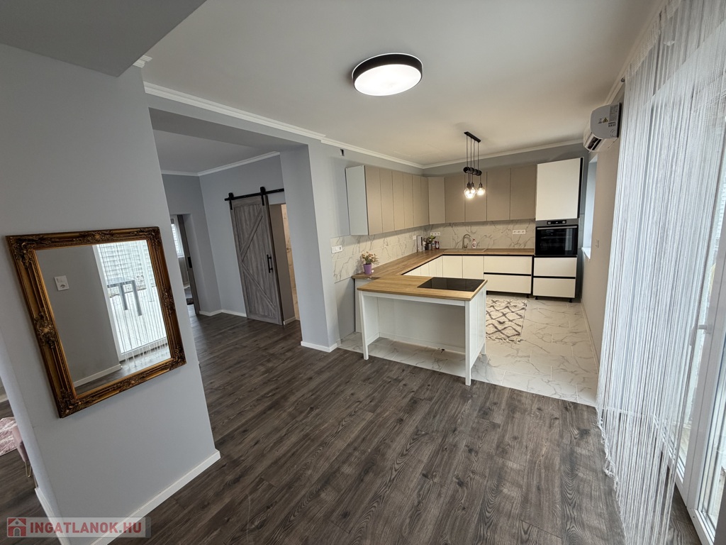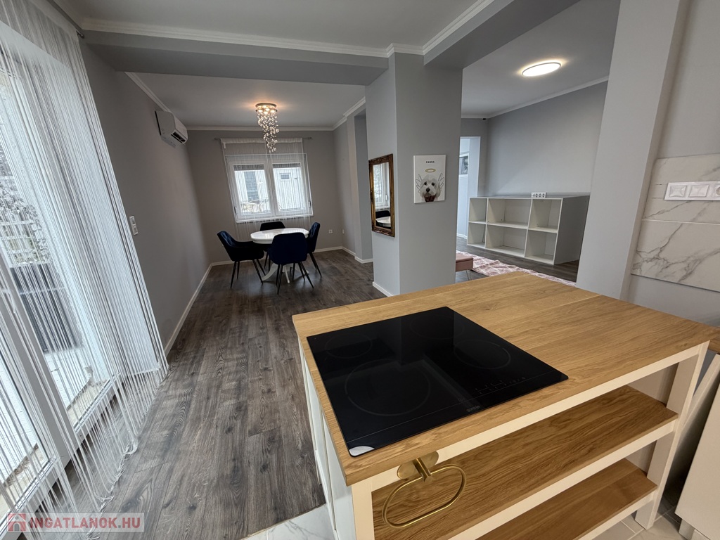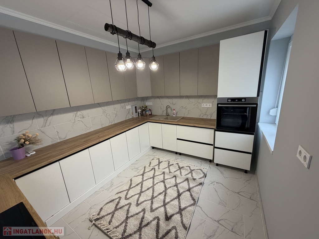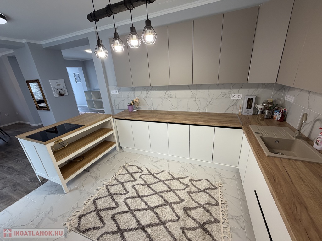 - Konyha: új, egyedileg gyártott konyhabútor – nem katalógusból