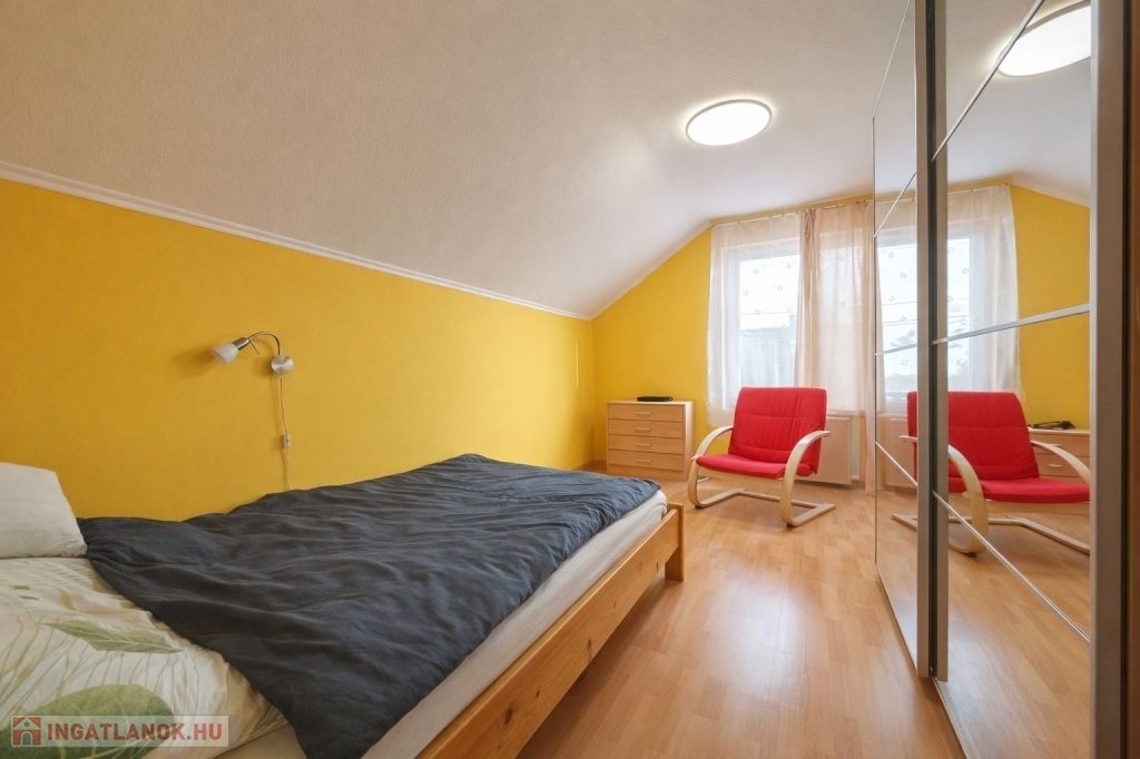 A tetőtéri szint nappali, konyha–étkező, 3 hálószoba, zuhanyzós fürdő, külön WC kiosztású.