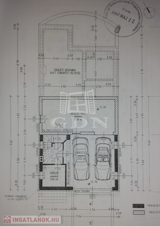 Szuterén (70 nm): 2 állásos garázs, kazánhelyiség és tároló.