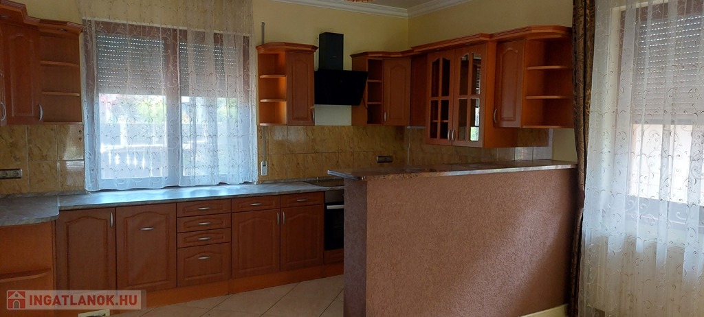 A szuterén-földszint beépítésű, szintenként 150 nm-es ház hatalmas, amerikai konyhás,