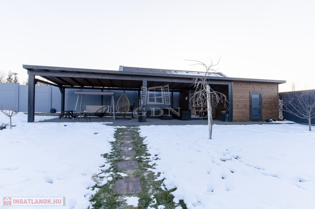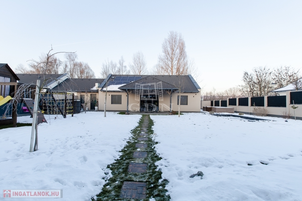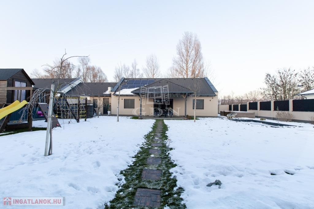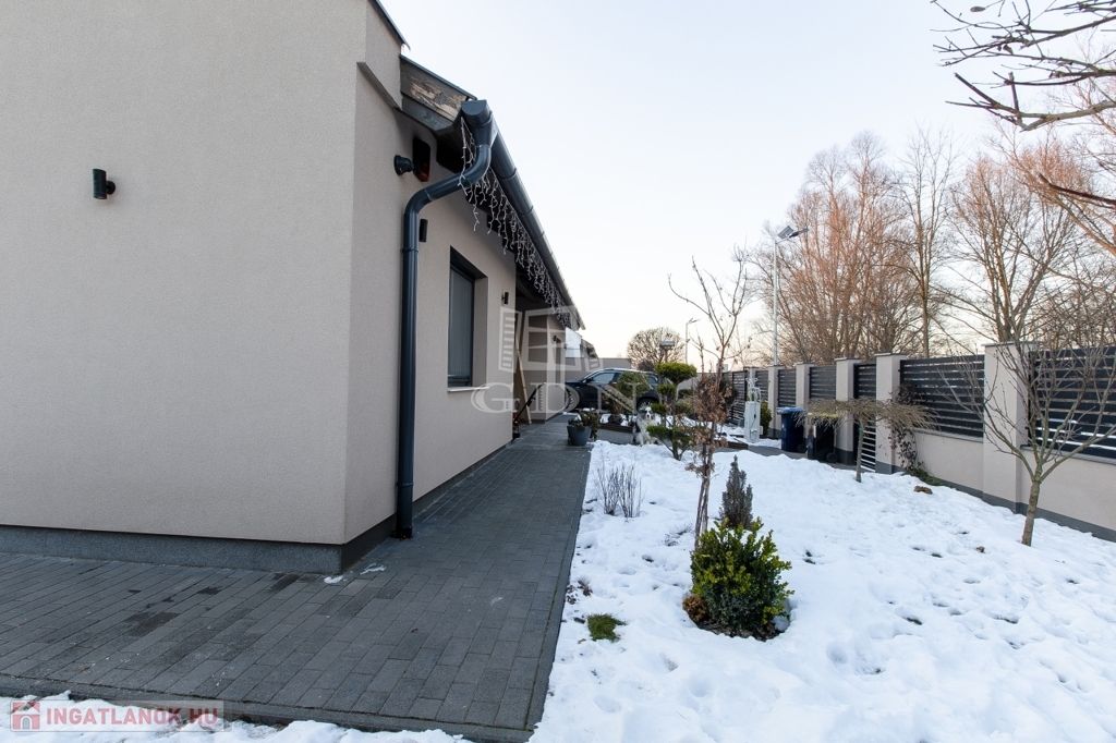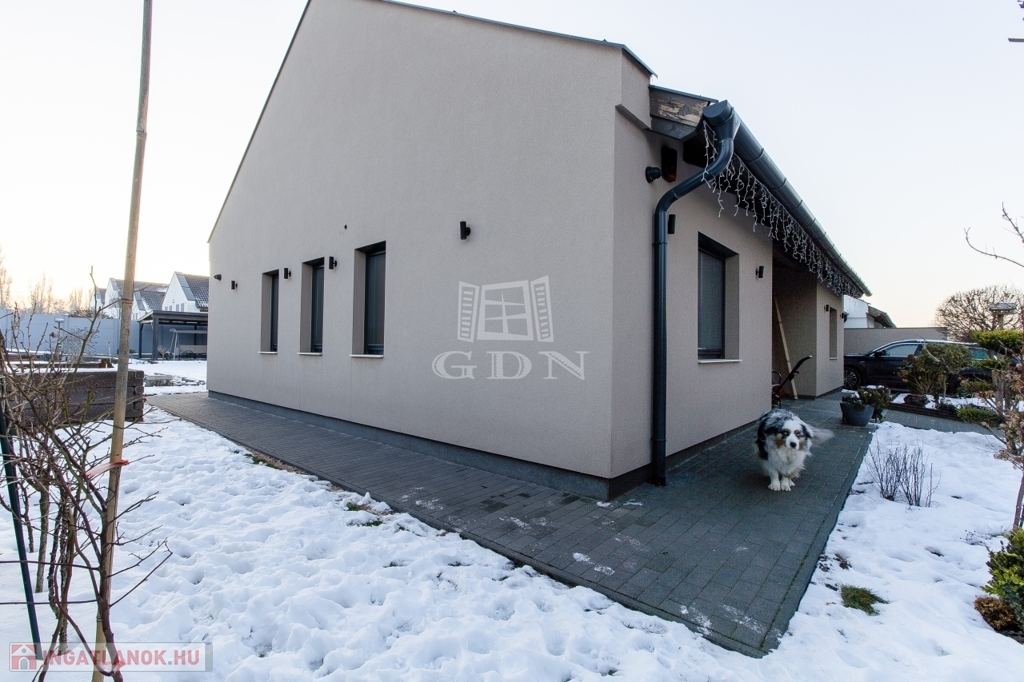 Az ingatlan 2020-ban épült, beton alapra, 30-as Phorotherm téglából, mely körbe 15 cm-es grafitos szigetelést, fa födémet arra 30 cm-es gyapotos szigetelést, betoncserép fedést kapott. Nyílászárók antracit thermo műanyag 3 rétegű üvegezéssel és Wifi-s motoros alumínium redőnnyel ellátottak.