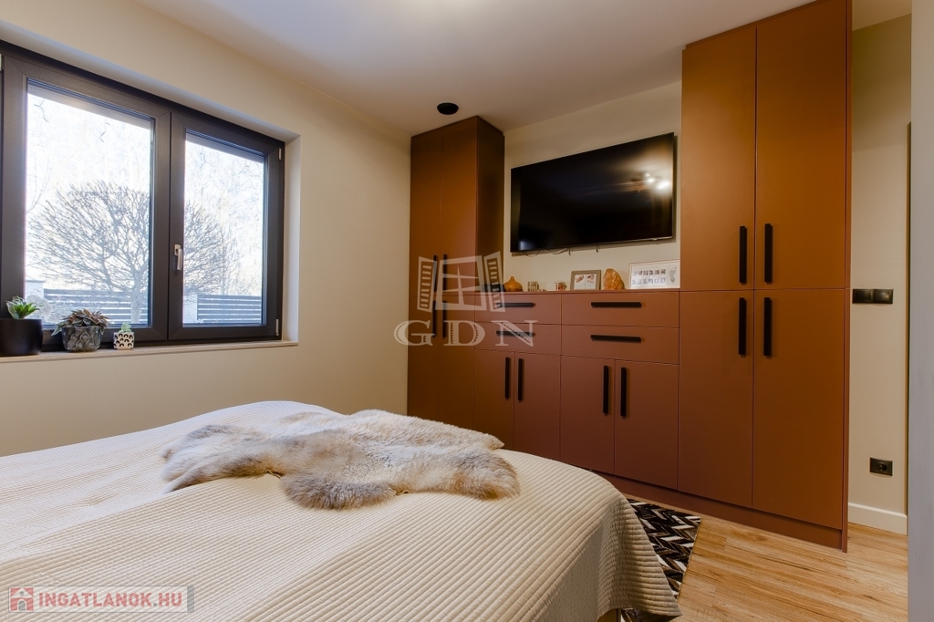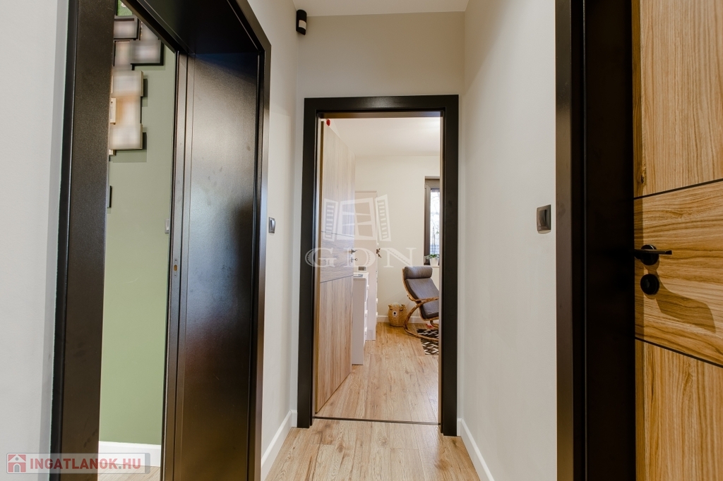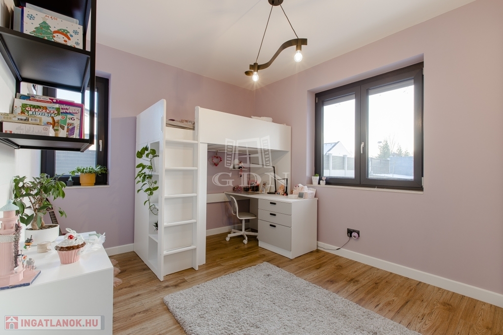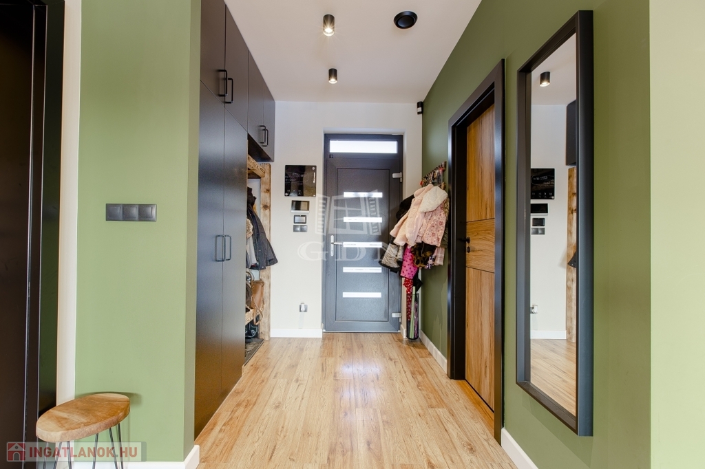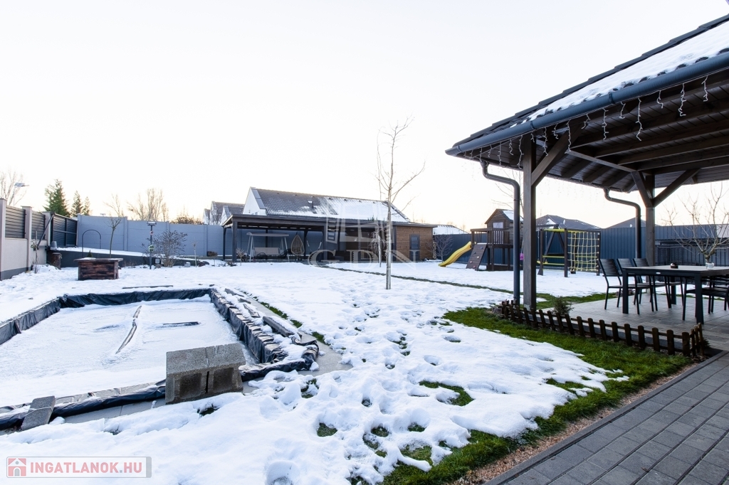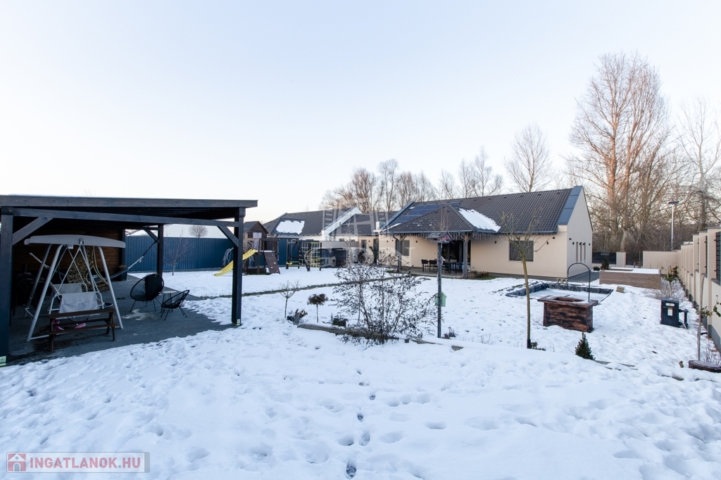 Az ingatlan 2020-ban épült, beton alapra, 30-as Phorotherm téglából, mely körbe 15 cm-es grafitos szigetelést, fa födémet arra 30 cm-es gyapotos szigetelést, betoncserép fedést kapott. Nyílászárók antracit thermo műanyag 3 rétegű üvegezéssel és Wifi-s motoros alumínium redőnnyel ellátottak.