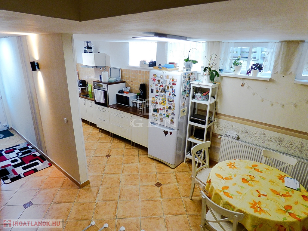 A kisebbik lakrész 35 nm-es, földszintes 1 szobával, fürdőszobával, konyhával nyerte el jelenlegi állapotát.