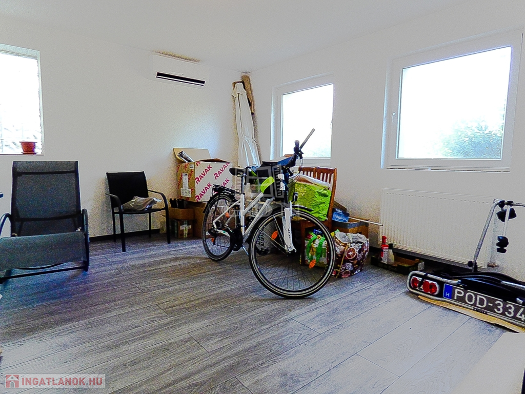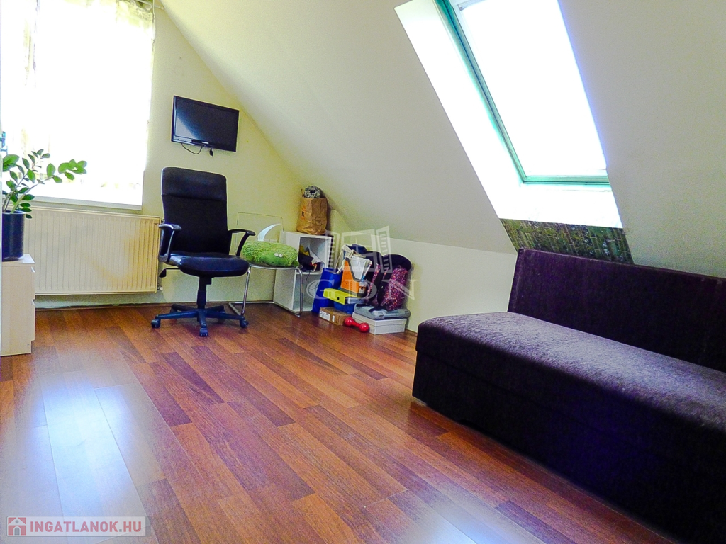 A nagyobbik lakrészen (110 nm) amerikai konyhás, étkezős nappali, 3 hálószoba, fürdőszoba, wc lett kialakítva két szinten.