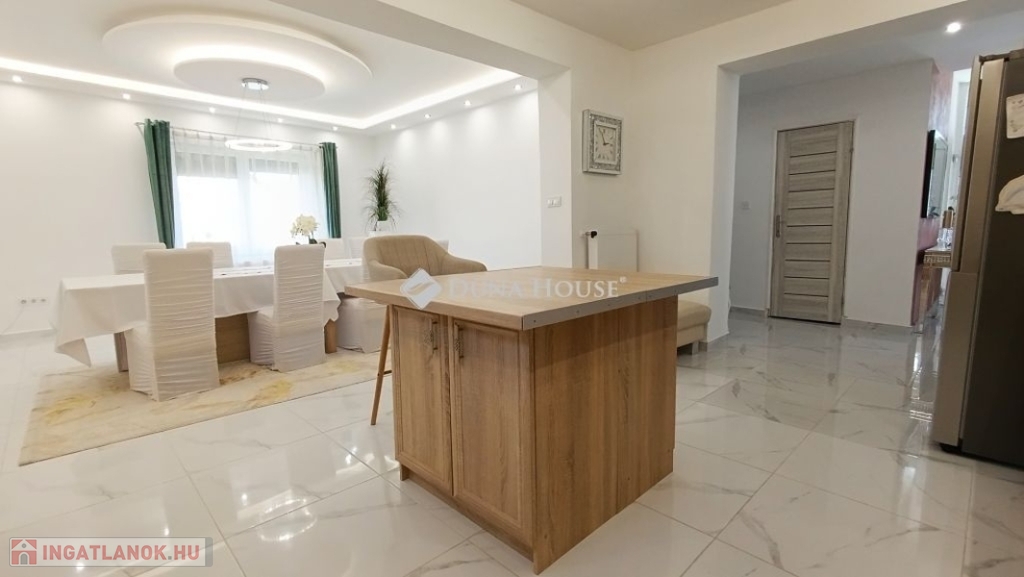 Eladó családi otthon Szajkon stílus, tér és nyugalom egy helyen!Szajk bájos kis falujában, Bóly ,Pécs és Mohács közelében kínáljuk eladásra ezt a 155 m²-es, teljeskörűen felújított családi házat, amely minden részletében az igényességet és a kényelmet tükrözi.Tér és elegancia.Belépve egy 33 m²-es, világos nappali fogad, ahol az álmennyezetbe rejtett hangulatvilágítás, a TV-fal kialakítása és a falszínek játéka azonnal otthonossá varázsolják a teret. A modern, márványmintás burkolat végigfut a házon, egészen a konyháig és a tágas étkezőig, ahol a konyhasziget és a nagy család számára is kényelmes hely biztosított. Szobák és burkolatok.A házban 2 teljes értékű szoba és 2 félszoba található, melyekben világos színű, jó minőségű laminált padló van. A fürdőszoba letisztult, modern burkolatokkal készült, a nyílászárók kívül-belül minőségiek, az ablakok elektromos redőnnyel felszereltek. Fűtés és szerkezet :A fűtés fatüzelésű kazánnal megoldott, de a gáz a telken belül van, így bármikor váltható. A ház 10 cm-es külső szigetelést kapott, már csak a színezés van hátra így az új tulajdonos saját ízlésére formálhatja.Telek és lehetőségek: Az 1281 m²-es telek körbekerítése és az udvar kialakítása az új lakóra vár. A melléképület akár garázsnak is átalakítható, vagy tárolónak, műhelynek is tökéletes. Szajk a nyugalom szigete Szajk elhelyezkedése ideális: Pécs és Mohács könnyen elérhető, de az autópálya,felhajtó is 3 percre van. A falu széles utcái, barátságos közössége, és nyugodt légköre tökéletes választás lehet családoknak, pároknak vagy akár idősebbeknek is.Ajánlom ezt az ingatlant nagy családoknak, hiszen itt mindenki elfér!Jöjjön, nézze meg, szeressen bele ez az otthon Önre vár!Hívjon akár hétvégén is, hitelügyintézésbe is tudok segíteni!