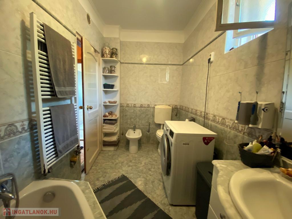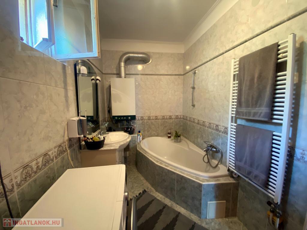 Fürdője sarokkádas, WC-vel, bidével, szellőztethető.