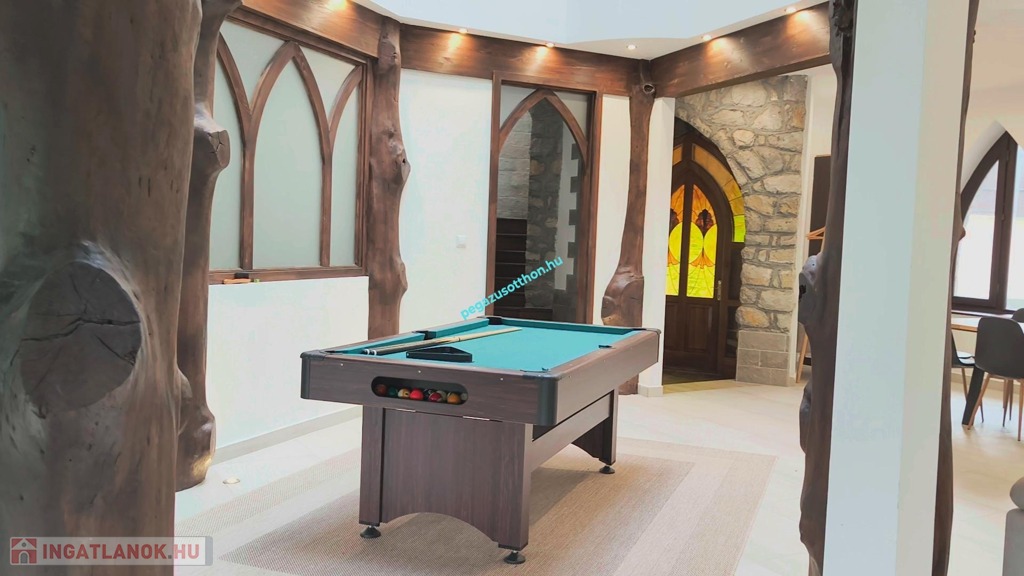 Az ingatlanhoz 12 méteres medence tartozik, ami jelen pillanatban fedve van, de kialakították a gépészethez szükséges teret.