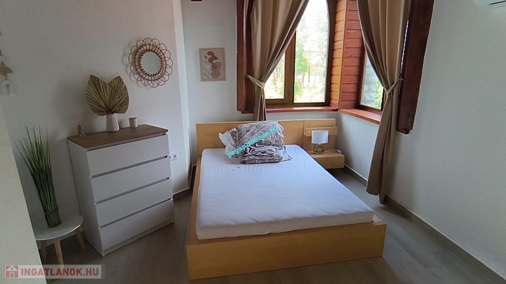 -Földszinti egysége külön apartmant alkot, nagyméretű nappalival, hálószobával, a fürdőszobában szaunával, és konyhával.