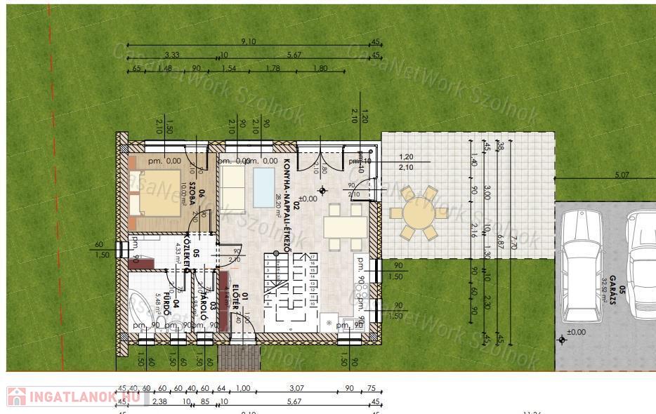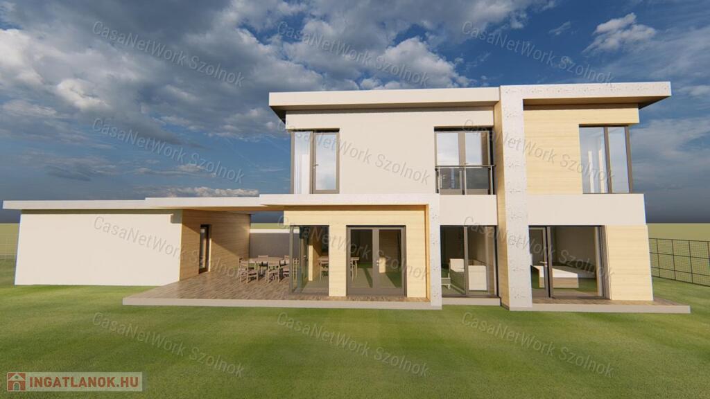 - kétszintes, tégla építésű családi ház 130 m2 alapterülettel, 20 m2 terasszal és 36 m2 garázzsal