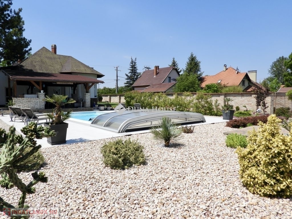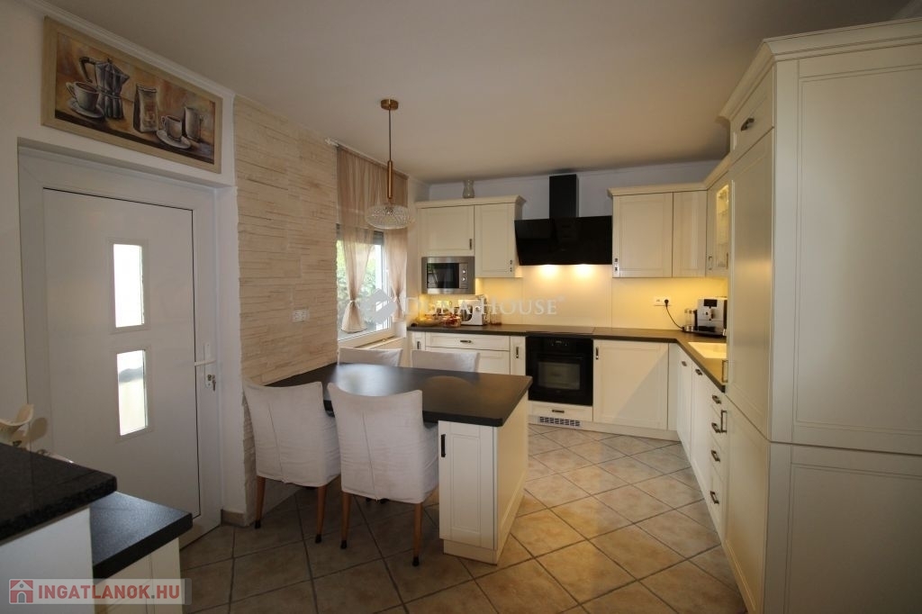 Csendes, zöldövezeti környezetben kínáljuk ezt a 150 m²-es, igényes kivitelezésű, 944 m²-es telken álló otthont. A ház elegáns, funkcionalitással és okos megoldásokkal teli: travertin fürdőszobák, márvány kerítéspárkányok, egyedi bútorok, tágas nappali, modern konyha és dolgozószoba várja új tulajdonosát.