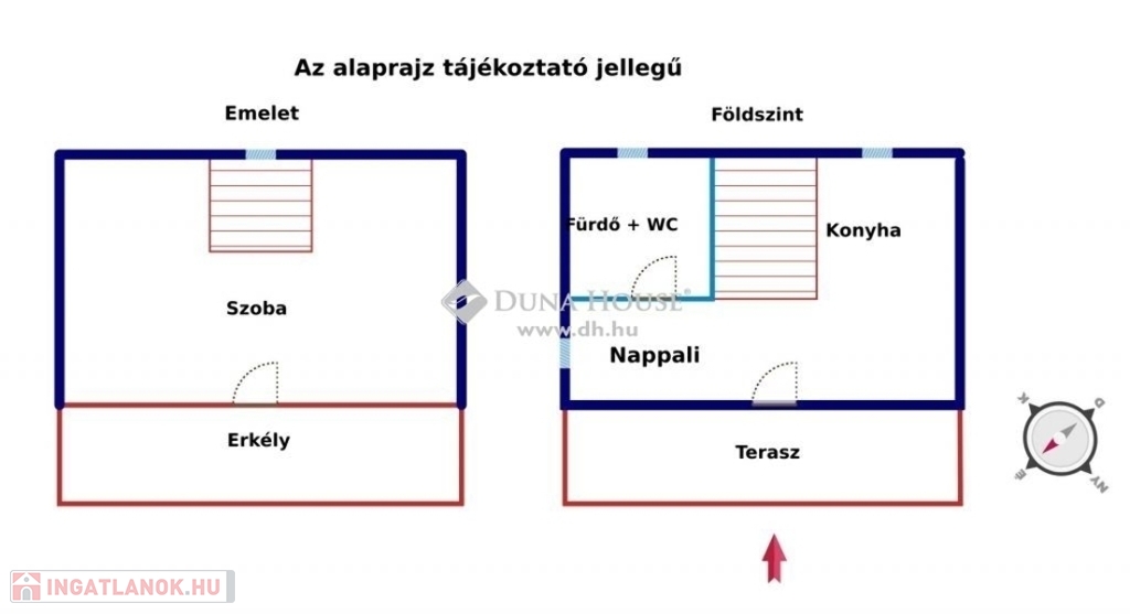 A házba a teraszon keresztül juthatunk be, ahol egy nappali és konyha fogad minket. Innen nyílik a fürdőszoba és a WC. Az emeletre felérve a hálószobába érkezünk, amelyhez erkély is tartozik. A telken víz és villany, a gáz pedig az utcában elérhető.