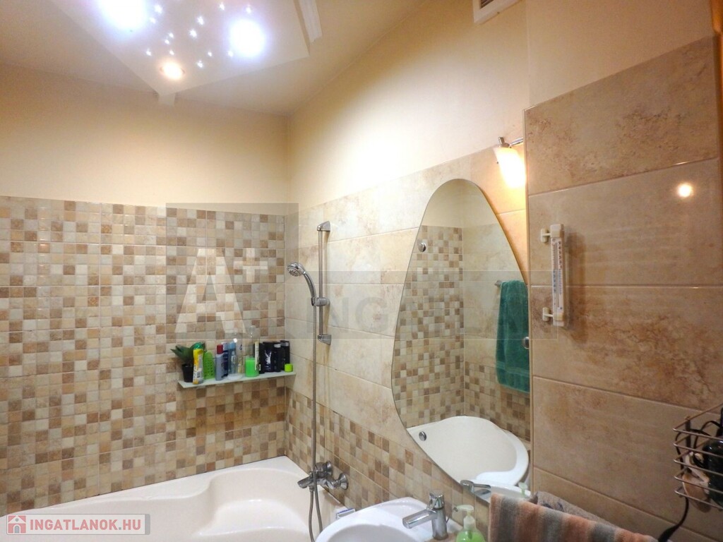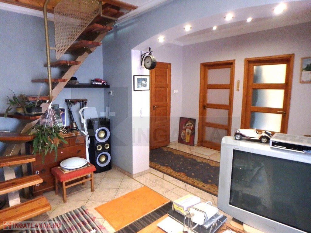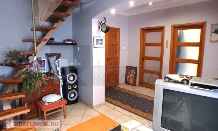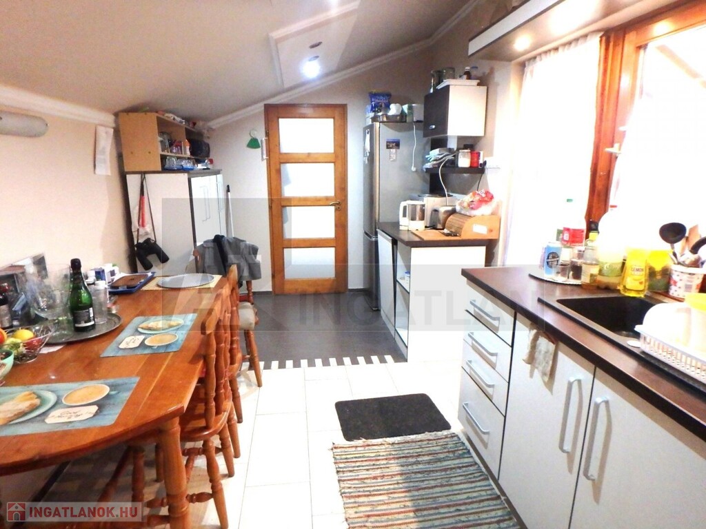 A földszinten nappali + 2 hálószoba, konyha (gépesítve, elektromos kerámialapos tűzhellyel, mosogatógéppel), étkező, kamra, fürdőszoba, külön WC, közlekedő, előszoba, terasz kapott helyet.