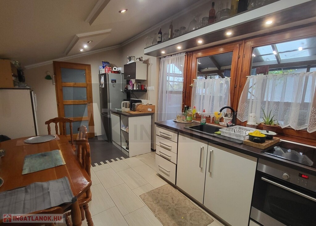- nagy, étkezős konyha (gépesítve, elektromos kerámialapos tűzhellyel, mosogatógéppel)