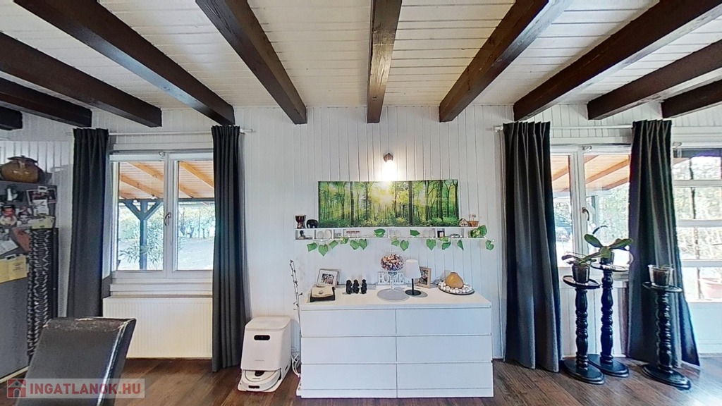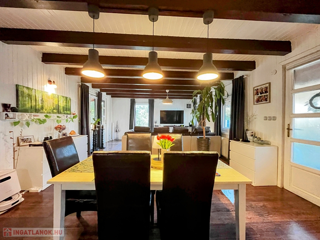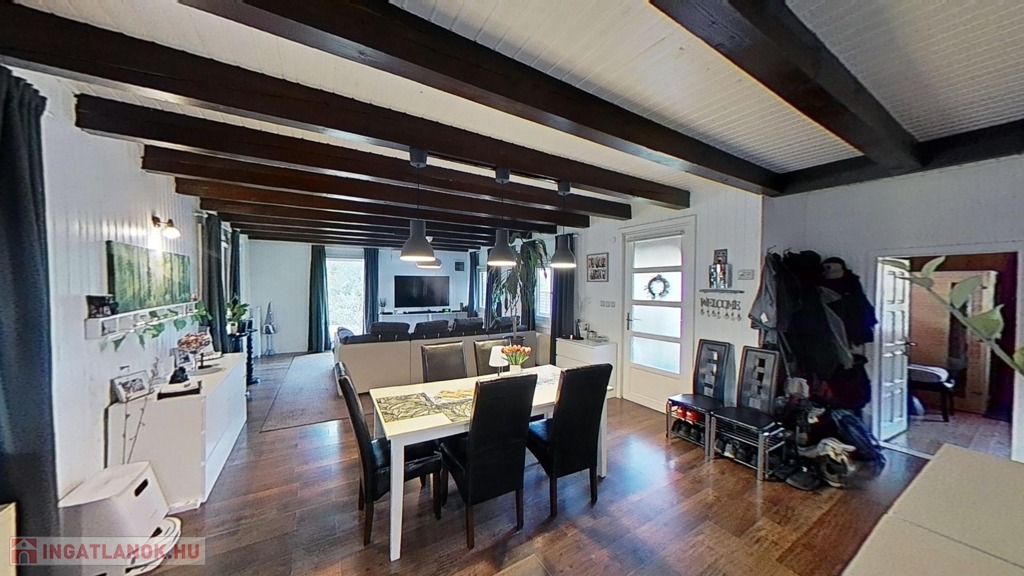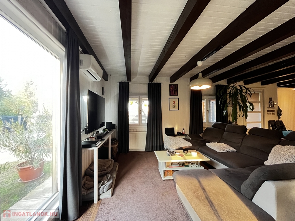 Szatymazon, Szegedtől pár percnyire vált eladóvá ez a 2008-ban, modern technológiával épült faház, mely bármely család minden igényét kielégítő otthona lehet. A ház hatalmas nappalija rendkívül fényes, mely a rengeteg üvegfelületnek, és a kiváló tájolásnak köszönhető.