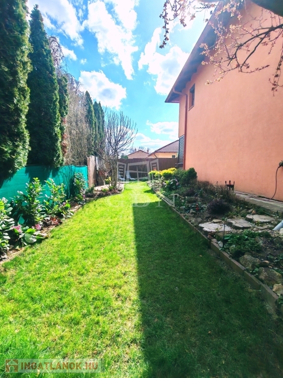 A hozzá tartozó 154 m²-es saját kert igazi érték ebben a kategóriában – rendezett, privát, és pont annyira tágas, hogy élvezni lehessen, ne pedig fenntartani. A 12 m²-es fedett terasz, az emeleti erkély és a kertben található, kb. 4 m²-es saját tároló tovább erősítik azt az életérzést, hogy itt a belső és külső terek harmonikusan kapcsolódnak egymáshoz.