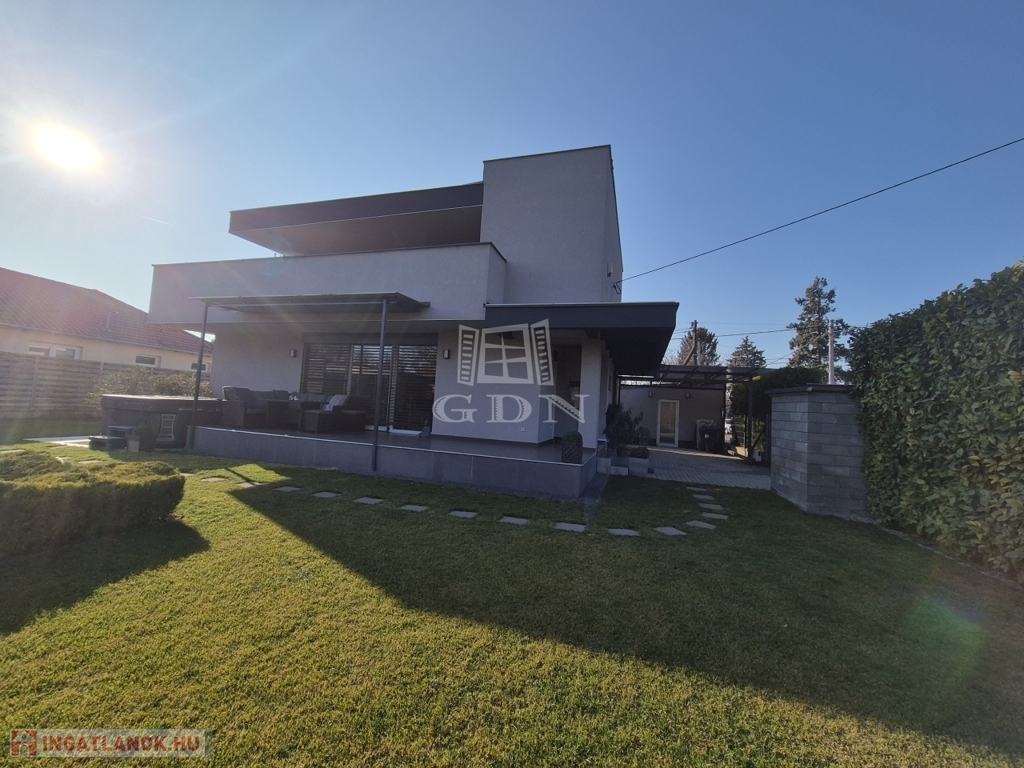 Százhalombatta méltán közkedvelt Dunafüred városrészén, a Duna-part szomszédságában, csendes, kertvárosias környezetben, 611 négyzetméter nagyságú saroktelken kínálunk eladásra, egy 2008-ban épült, újszerű, modern, igényesen kivitelezett kétszintes, 2+3 félszobás, önálló családi házat.