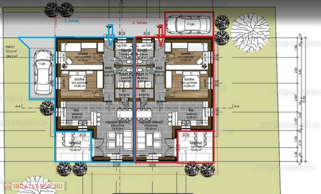 Parkolás: a lakáshoz 1 gépkocsi számára burkolt, udvari-felszíni beálló áll rendelkezésre!