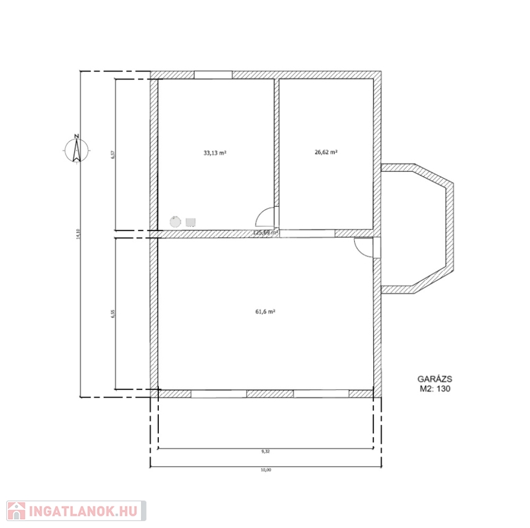 Két állásos garázs, két külön műhely/raktár helyiséggel.