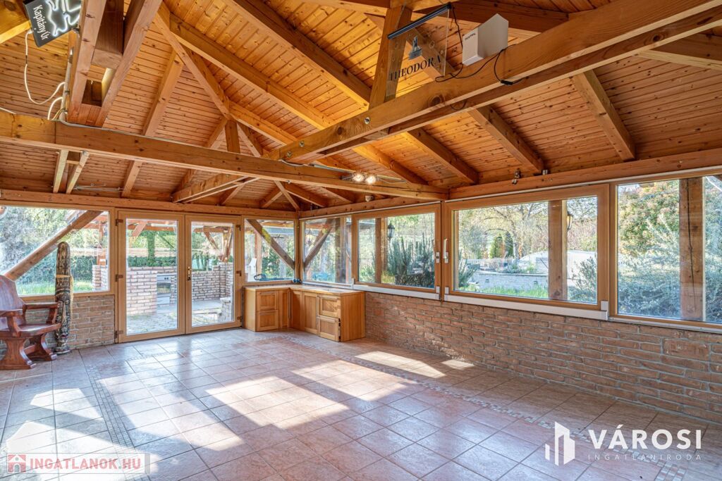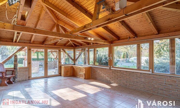 Szeged Gyálarét városrészében, ELADÓ, 2003-ban épült, tégla építésű, átlagos - normál állapotú, 140 nm-es élettérrel rendelkező, nappali plusz három szobás, fürdős, 30 négyzetméteres hangulatos, és temperálható téli kerttel rendelkező, családi ház, melyhez "szemmel alig látható " 1990 négyzetméteres telek jár, medencével (csúszdával), kültéri jakuzzival, kerti grillezővel, szökőkúttal.