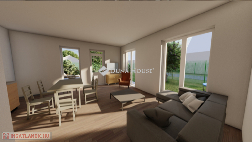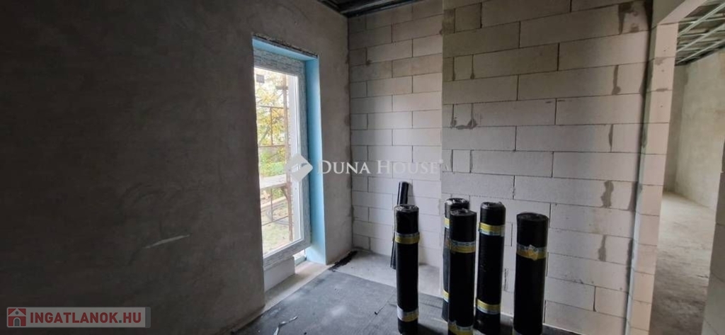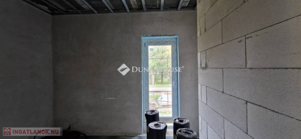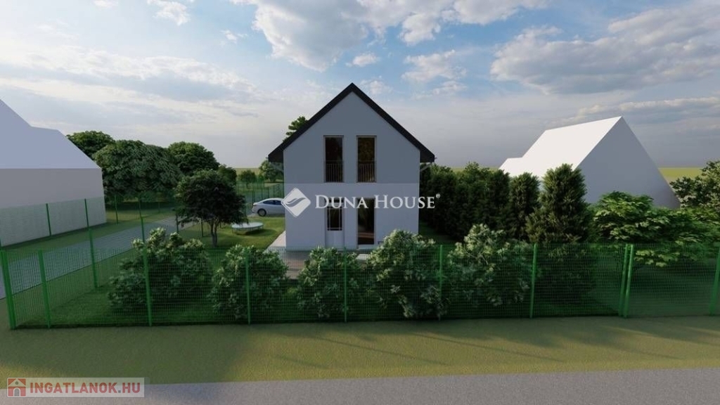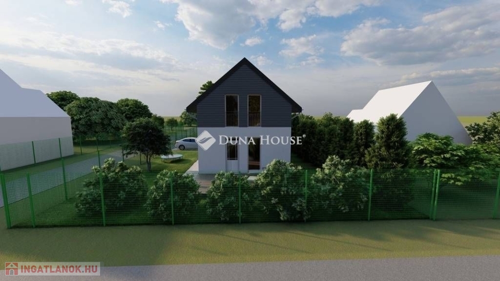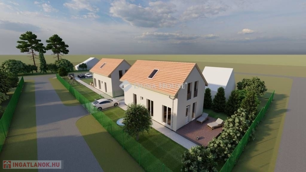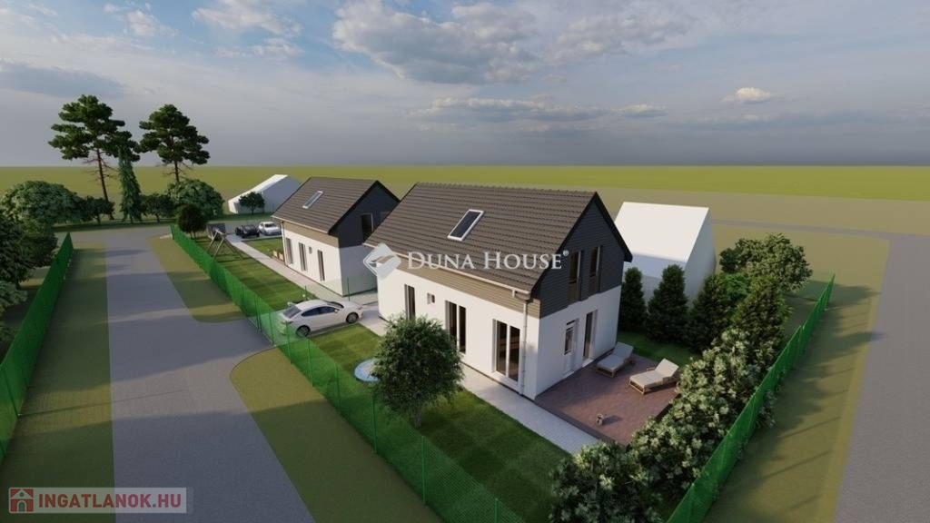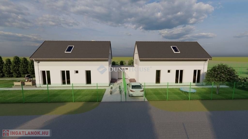 Egy telken belül - megosztott használatban - két egyforma ház épül. Ehhez az ingatlanhoz 234 négyzetméter alapterület tartozik. A telken elhelyezkedő ház 103 négyzetméter. Két szintet kapott. Az alsó szinten kialakításra került egy nappali + konyha, egy szoba, fürdőszoba + WC, közlekedő, illetve egy kamra. A nappaliból nyílik a terasz, ami 18 négyzetméteres. A lépcsőn feljutunk a tetőtér közlekedőjébe, ahonnan külön nyílik két szoba, illetve egy zuhanyzó + WC.